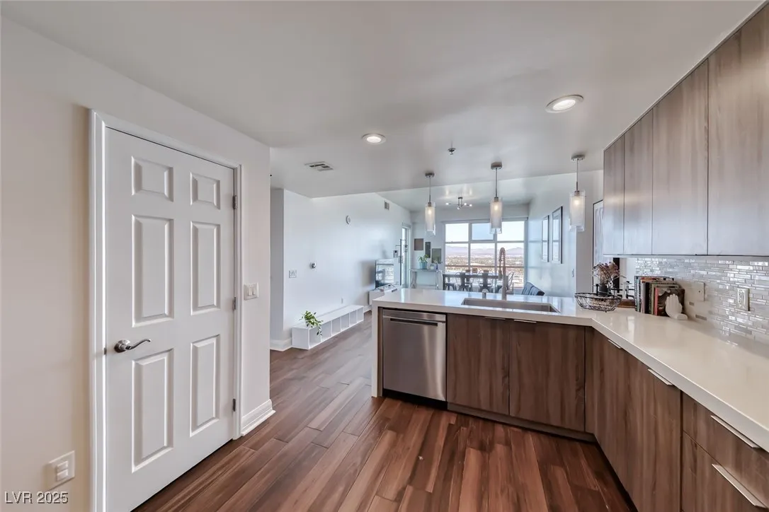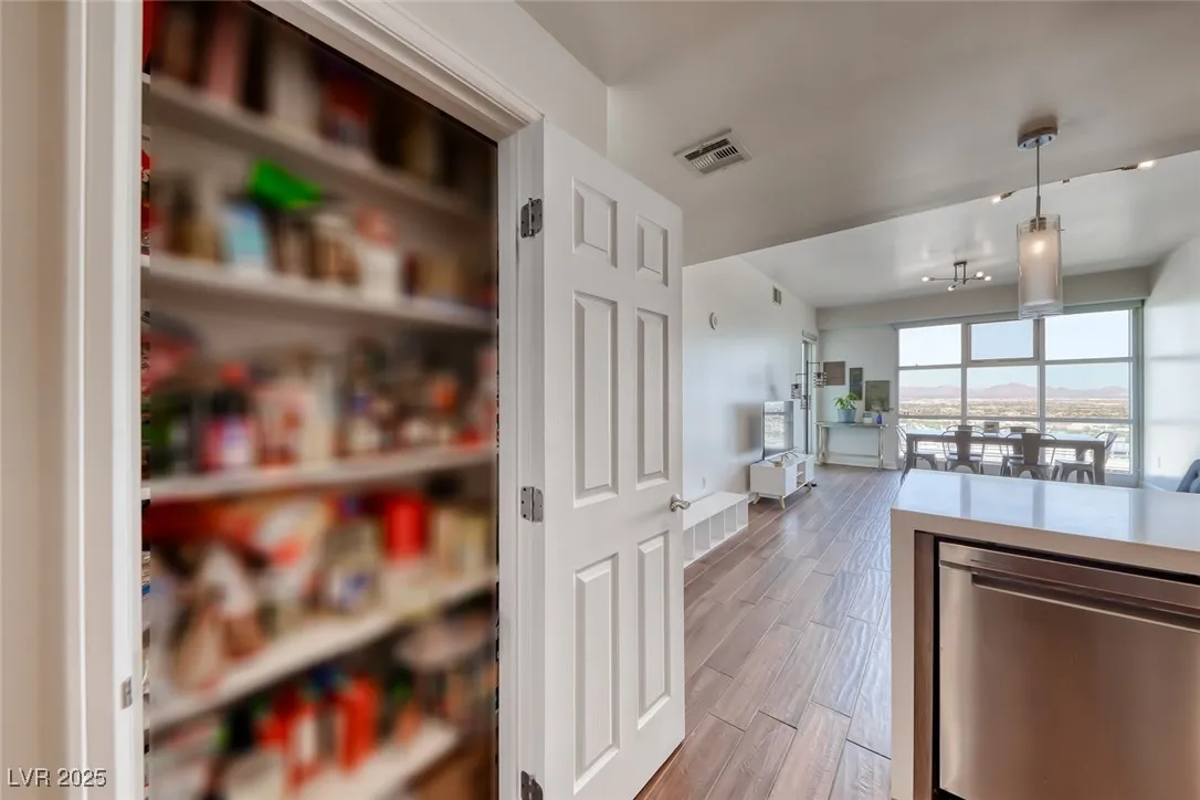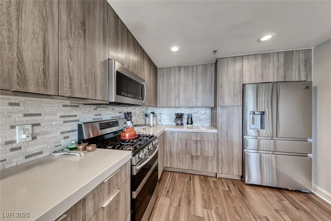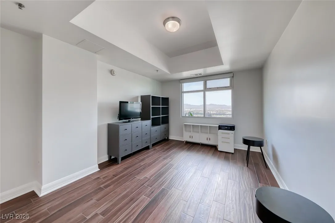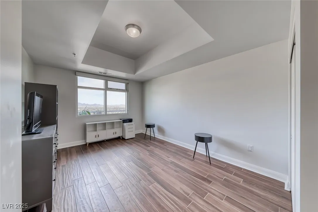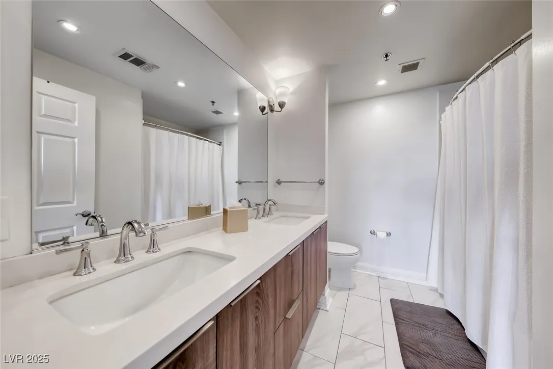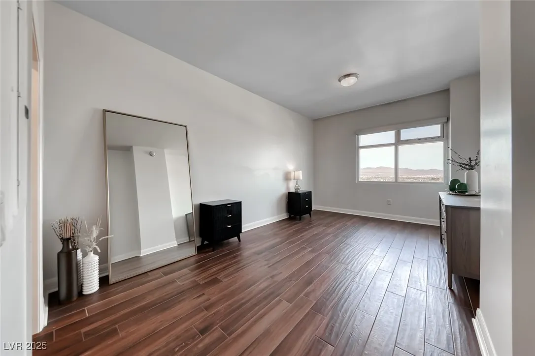 RARE MODEL Luxury High Rise Condo at The Ogden with 2 GARAGE PARKING! This Condo is on the 18th Floor and has 2 bedrooms and 2 baths. The Condo includes 2 Full Parking Spots which is Rare! Entire wood plank tile throughout the condo. To the left side is the hallway to the Primary Bedroom with Primary Bath, and the Second Bedroom and a Hallway Bath. The Primary Bath has Dual Vanity and a Walk In Shower and Walk In Closet. The Second Bath has Dual Vanity and Combined Shower and Tub. To the right side of the hallway is the kitchen with an open space for the living and dining area. The Kitchen is upgraded with modern cabinets, Stainless Steel Appliances and Modern Quartz Countertops and a breakfast bar. The Living and Dining Area have laminate flooring and a french door to the balcony that gives you beautiful mountain views! Rooftop Pool and Spa, Outdoor Terrace & Sky Deck with BBQ, Social Lounge, 24 Hour Fitness, Concierge and Security all in the heart of Downtown Las Vegas!