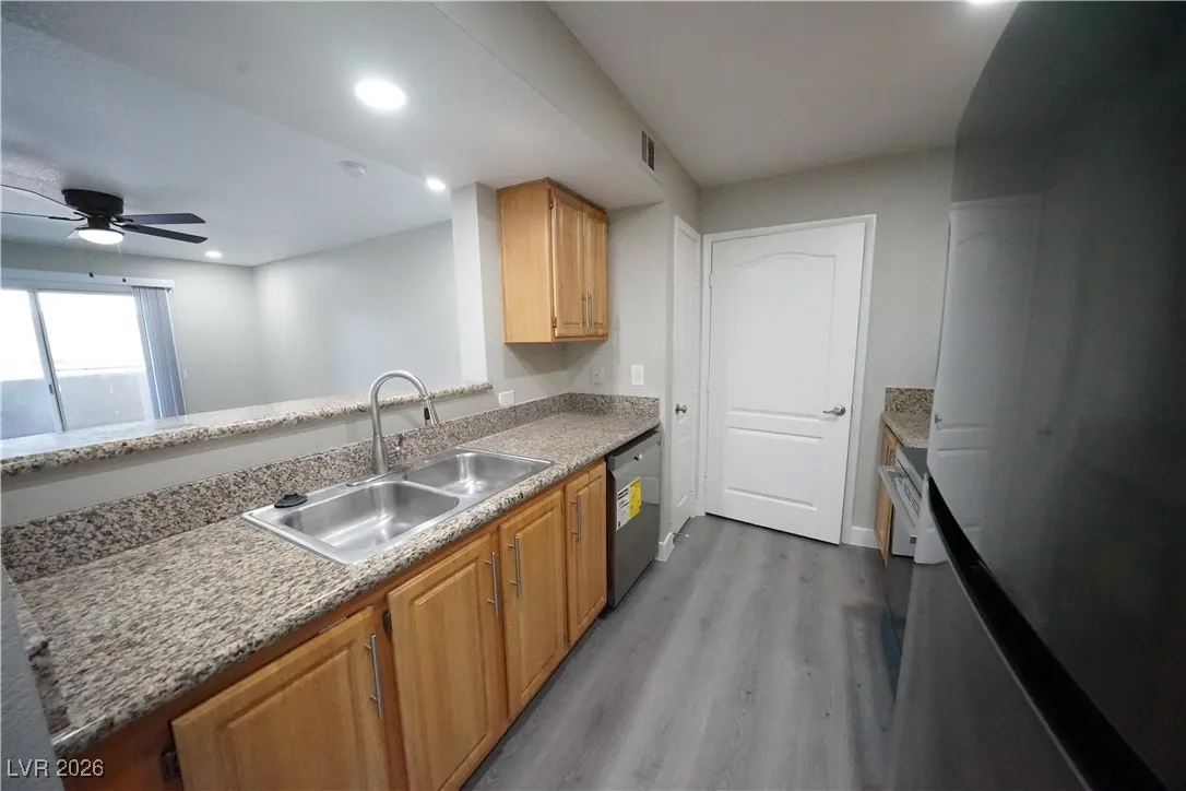Gorgeous 1 bedroom 1 bathroom 1st floor condo located in desirable SW in gated community. This unit offers comfortable living with recent updates including Luxury Vinyl Plank thoughout, 5″ baseboards, 2″ faux wood blinds, new faucet fixtures, ceiling puck lights, all new stainless steel appliances and washer and dryer, new AC Unit/heater and water heater and so much more. The open living & dining area offers a functional layout, while the bedroom provides ample space and access to bathroom to complete en-suite. Conveniently located near shops, restaurants & freeway access.