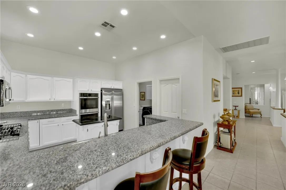 OLD WORLD IS THIS LUXURIOUS & ELEGANT GATED “CASTLE”. 3 CAR GARAGE COMLETELY LANDSCAPED, FRONT LIVINGROOM; INIMATE FORMAL DINING; ISLAND IN KITCVHENWITH 2 DIFERENT GRANTIES’S – LARGER BREAKFAST AREA – FAMILY ROOM WITHBEAUTIFUL MILLOWRK SURROUNDING FIREPLACE ANDLARGE SCREEN TV; HIGH END FURNITURE AND ACCESSORIES; PLANATATION SHUTTERS; CUSTOM DRAPERIES, HARDWOOD FLOORING OVER SIZED COVERED PATIO AND LOVELY SPARKLING POOL JUST IN TIME FOR THE LAS VEGAS HEAT AND ENTERTAINING. All new stainless steel appliances, new epoxy paint on garage flooring! Pool service & Landscaping are included in the rent