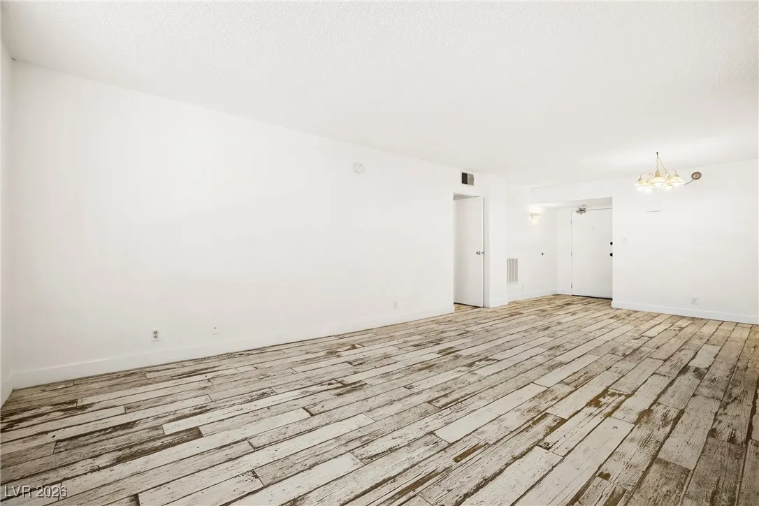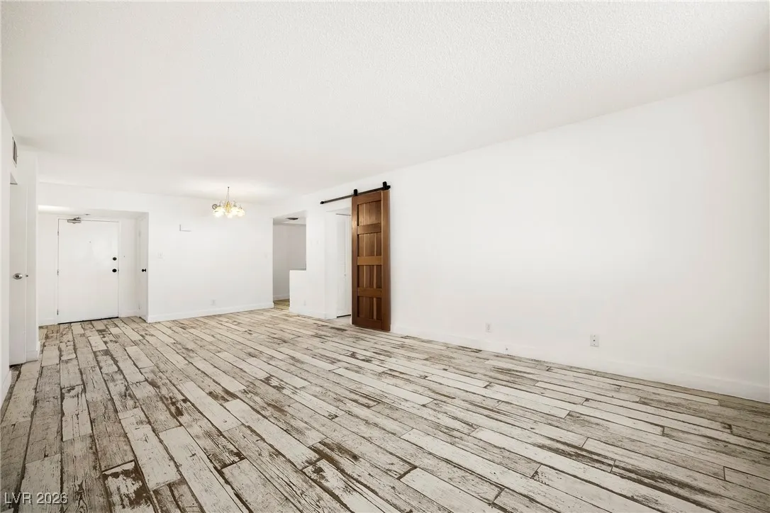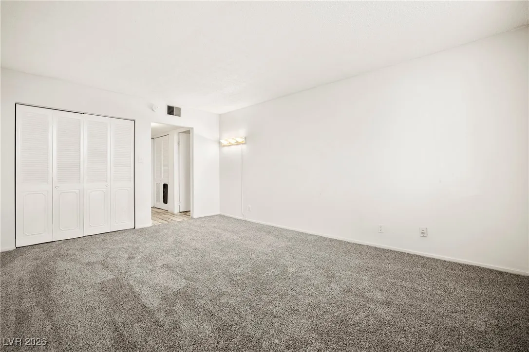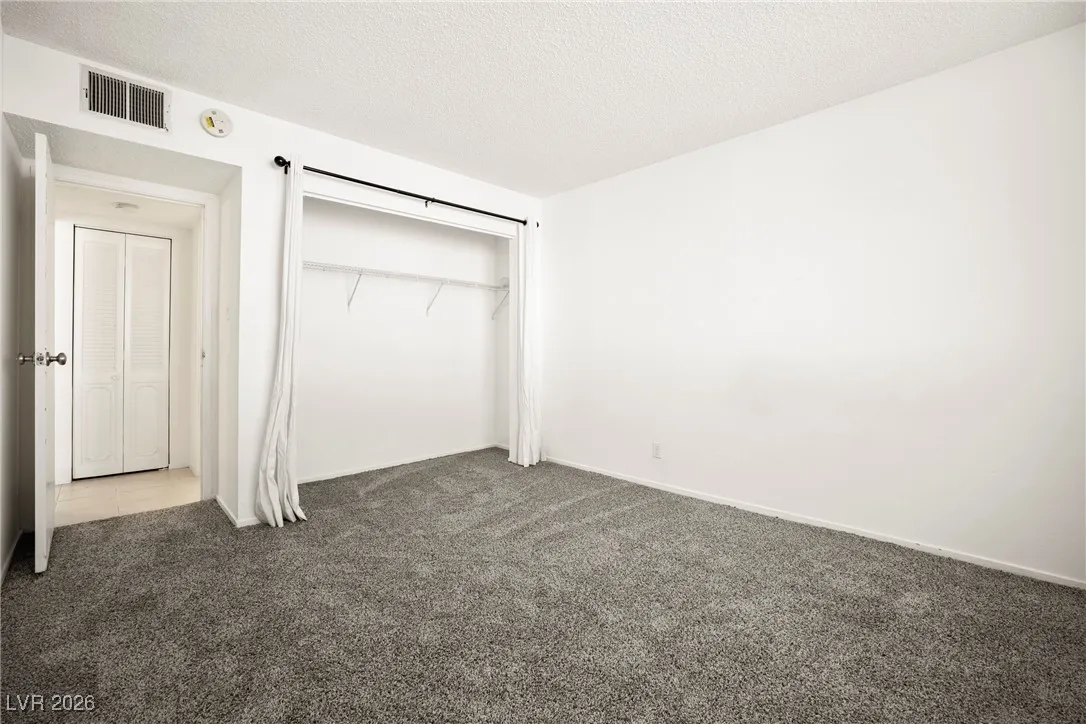 Welcome to this 4th-floor, 2-bedroom condo in Wimbledon Tower, ideally located near UNLV, in the center of all the action, yet tucked away for quiet living and focused study. Inside, the home features a spacious living area that flows into an open kitchen with newer cabinets, appliances, and sink, offering a fresh, functional space for everyday living. Wood-look porcelain tile provides a durable yet updated feel throughout the main areas, while new carpet in the bedrooms adds comfort. New mini blinds complete the clean, move-in-ready look. The bedrooms are positioned on opposite sides of the condo, creating excellent privacy, with a stylish barn door enhances the secondary living quarters. A large storage room at the front of the unit offers valuable extra space rarely found in condo living. Wimbledon Tower is a fully gated community with secure building access, featuring laundry rooms on each floor and exciting amenities including a pool, tennis court, exercise room, and movie room.