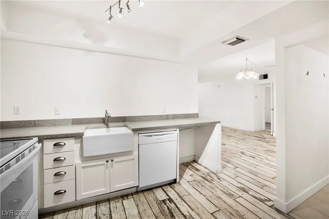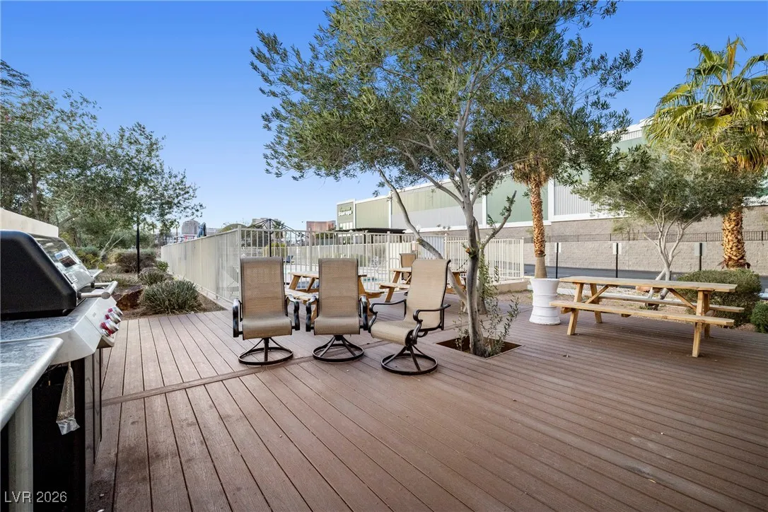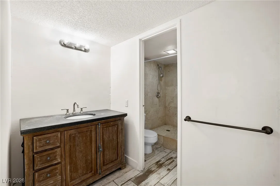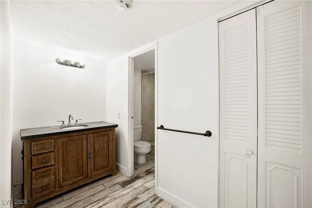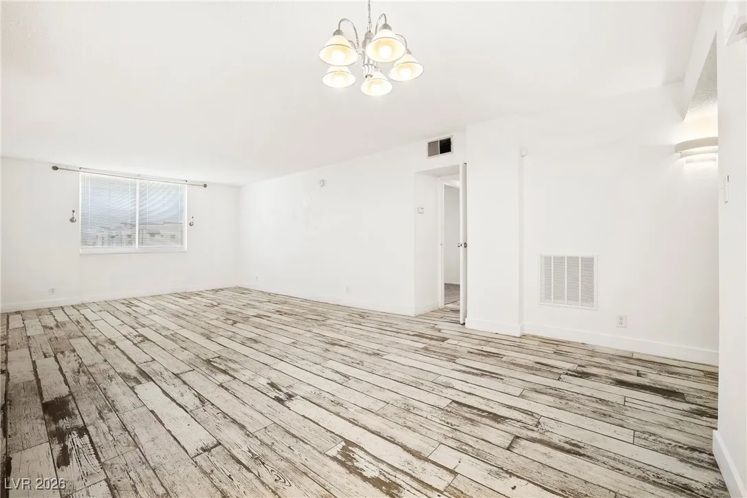 Welcome to this 4th-floor, 2-bedroom condo in Wimbledon Tower, ideally located near UNLV, in the center of all the action, yet tucked away for quiet living and focused study. Inside, the home features a spacious living area that flows into an open kitchen with newer cabinets, appliances, and sink, offering a fresh, functional space for everyday living. Wood-look porcelain tile provides a durable yet updated feel throughout the main areas, while new carpet in the bedrooms adds comfort. New mini blinds complete the clean, move-in-ready look. The bedrooms are positioned on opposite sides of the condo, creating excellent privacy, with a stylish barn door enhances the secondary living quarters. A large storage room at the front of the unit offers valuable extra space rarely found in condo living. Wimbledon Tower is a fully gated community with secure building access, featuring laundry rooms on each floor and exciting amenities including a pool, tennis court, exercise room, and movie room.
