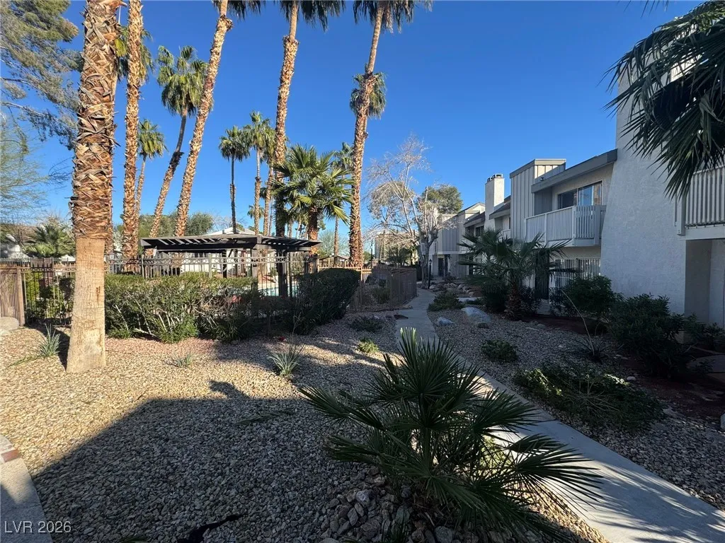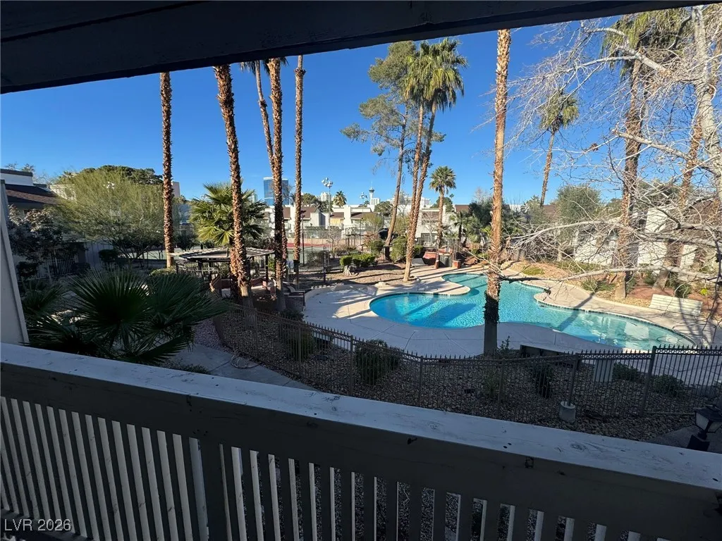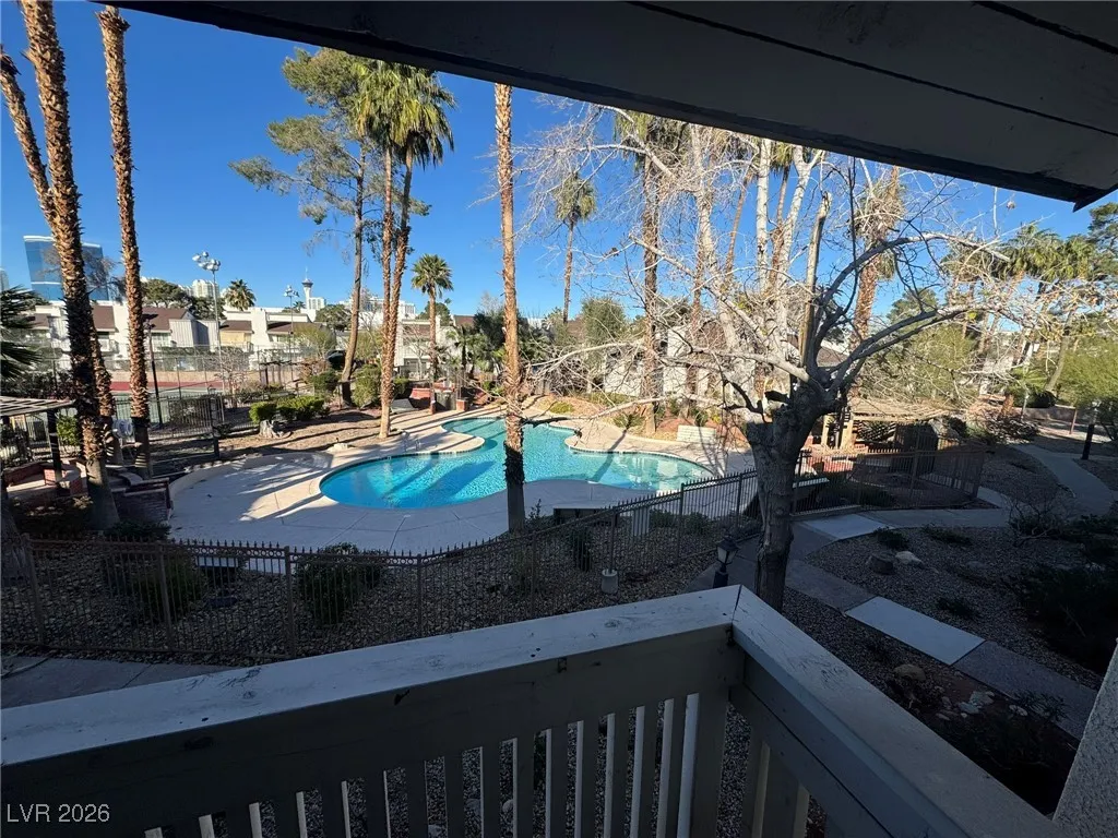 Spacious two-story townhome featuring 3 bedrooms, 2.5 bathrooms and over 1,500 square feet of living space located in a gated community just minutes from the Las Vegas Strip, shopping, dining and major roadways. The interior offers a bright and open living area with a cozy fireplace and an inside laundry area with a functional floor plan ideal for comfortable everyday living. The kitchen and dining areas flow into the main living space creating a great setup for both relaxing and entertaining. Upstairs the primary suite and secondary bedrooms provide privacy and separation while the private balcony overlooks the community pool and tennis courts offering a pleasant view and a peaceful place to unwind. The home also includes a covered carport and a semi-private rear courtyard perfect for outdoor seating container gardening or additional storage. Community amenities include a pool tennis courts and gated entry for added convenience. Total monthly rent is $1600 and tenant pays power.