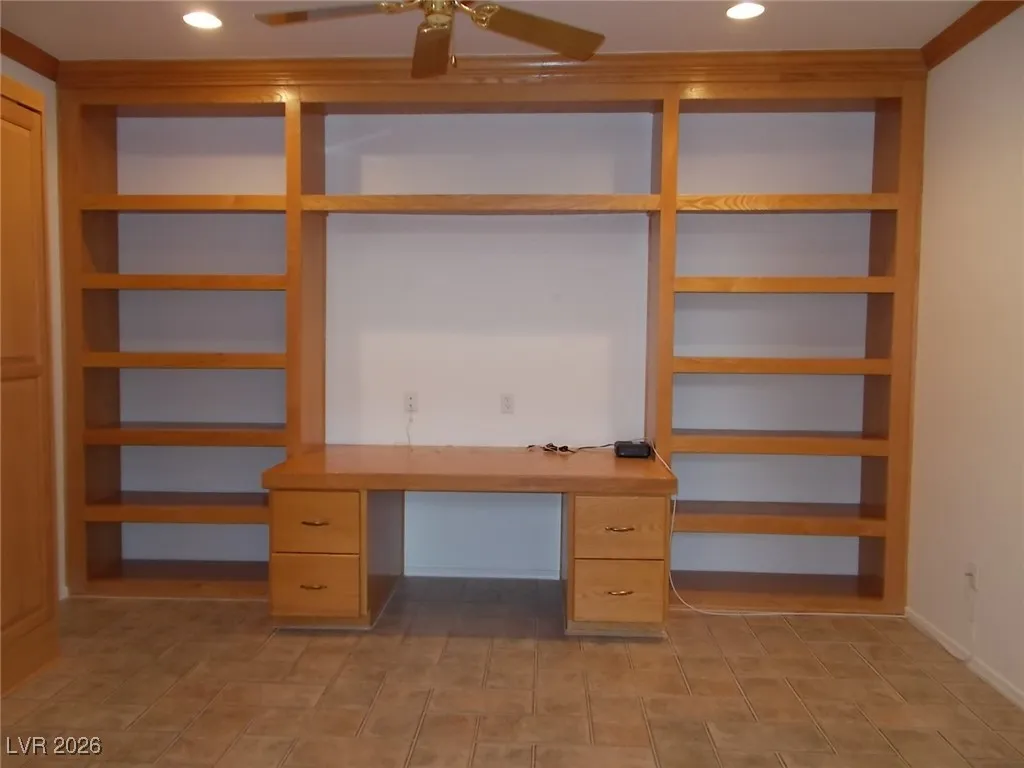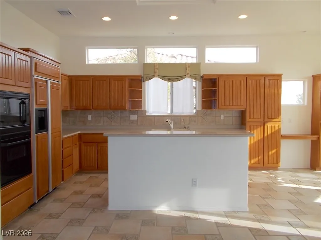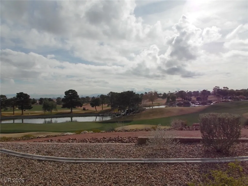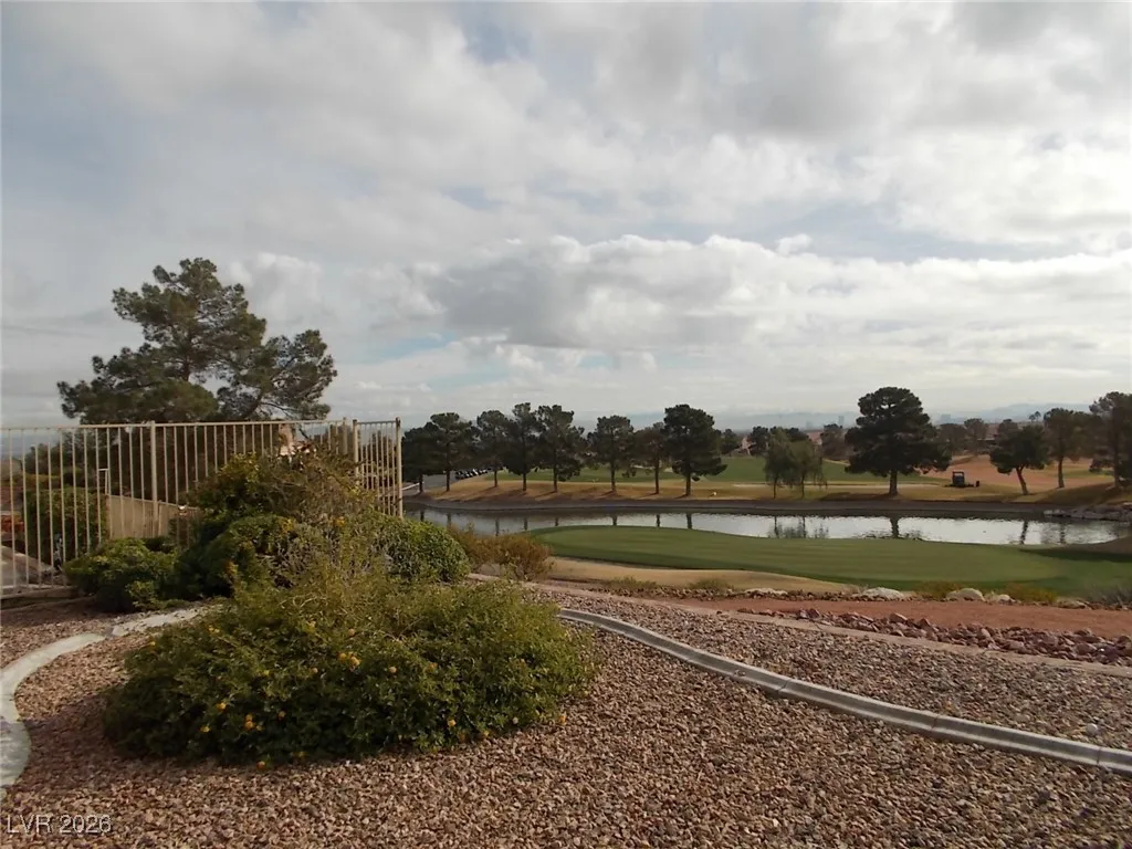 Single-story 2-bedroom, 2-bath townhome located in the heart of Summerlin. This inviting home features a gated front courtyard and a spacious living room with a cozy fireplace, seamlessly flowing into the dining area accented by a chandelier. The kitchen offers oak cabinetry, recessed lighting, an island with cooktop range, and a charming breakfast nook with scenic golf course views. The primary suite includes direct access to the rear patio overlooking the golf course and pond, along with a primary bath featuring double sinks and a vanity. The second bedroom is versatile and includes a Murphy bed, making it ideal as a guest room or home office. A dedicated laundry room comes equipped with washer, dryer, and utility sink. Additional highlights include a private hot tub room with shower conveniently located off the garage. Enjoy tranquil views and a prime location close to shopping, dining, and entertainment.