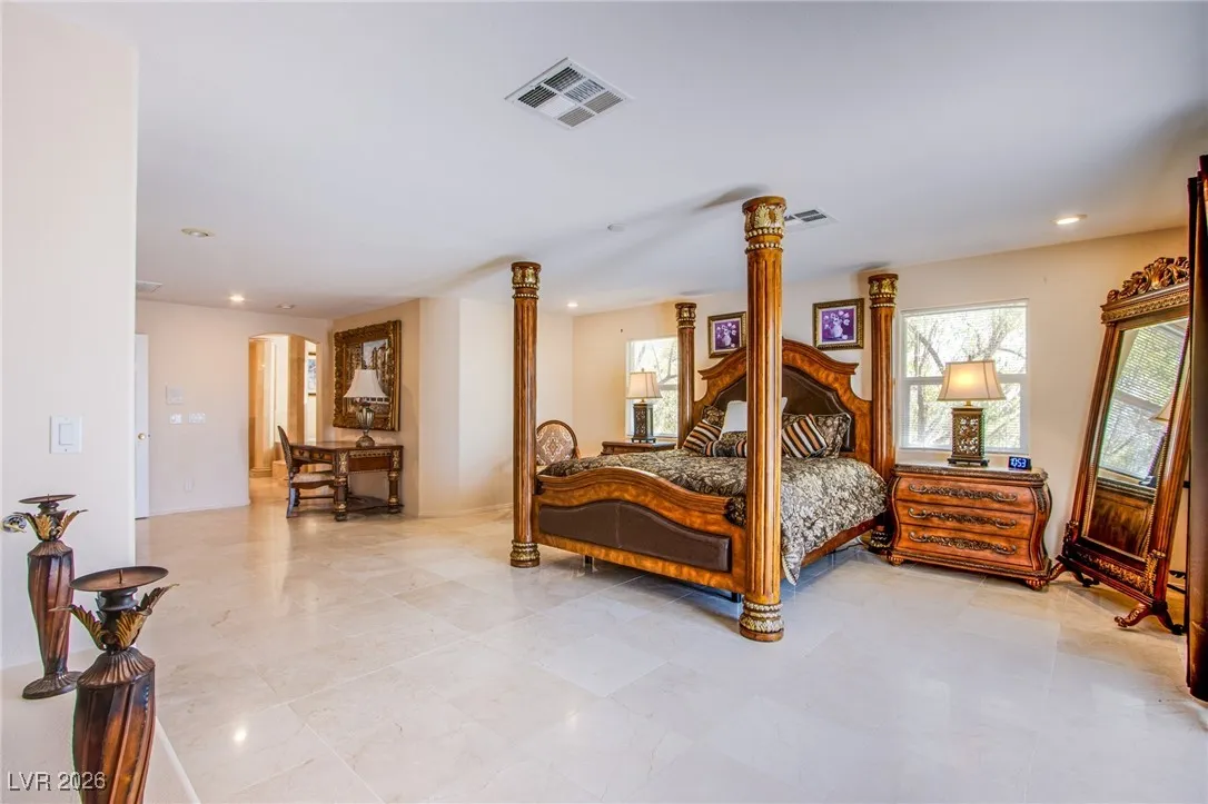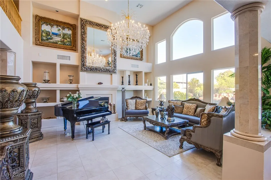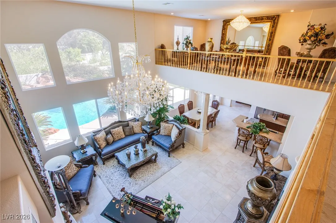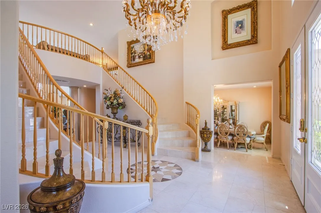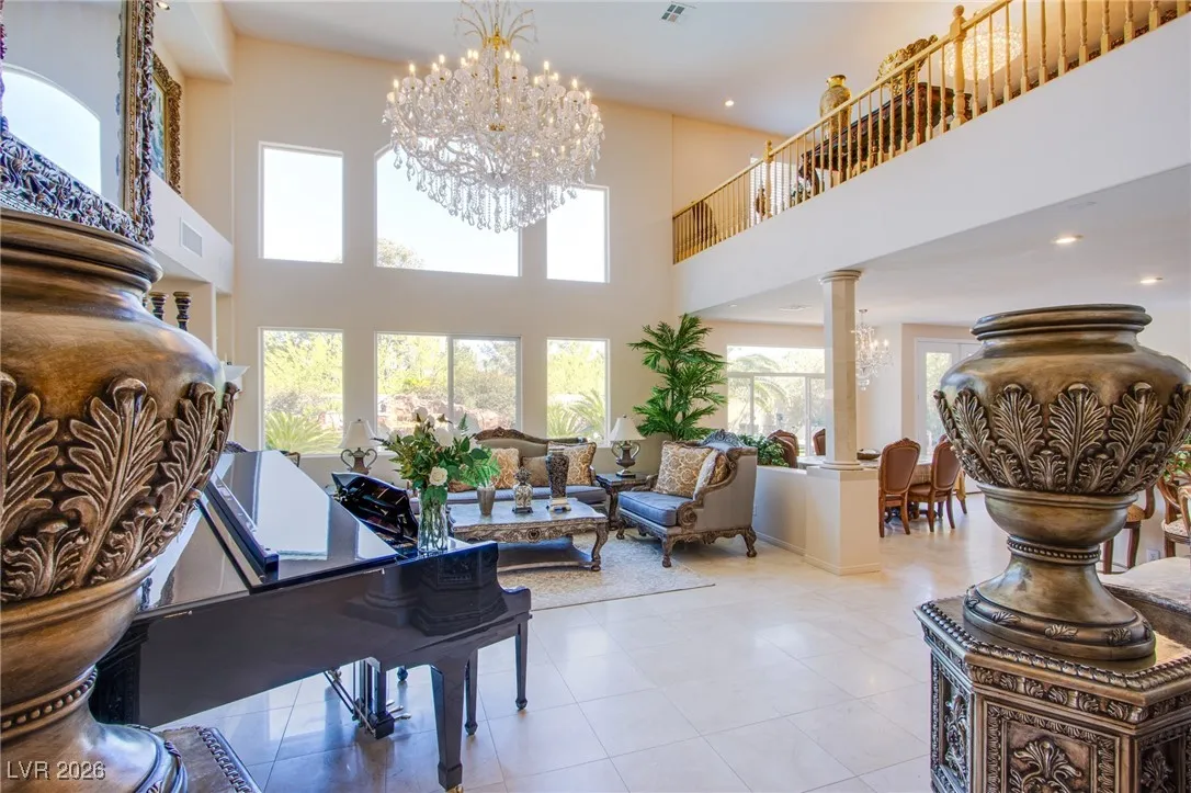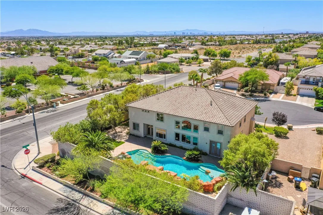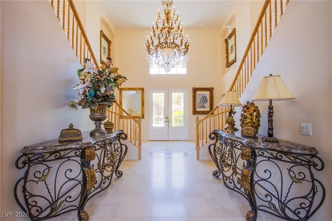 **Experience Turnkey Luxurious Living!** Step into elegance with this stunning home featuring a grand entry and a breathtaking marble spiraling double staircase. Perfect for entertainers, enjoy natural light flooding the space as you play your grand piano, all while overlooking a gorgeous resort-style pool and spa that spans nearly the entire spacious corner lot. Relax to the soothing sounds of three separate waterfall features and a grotto, all complemented by spectacular strip and mountain views. The chef’s dream kitchen awaits, equipped with a professional-grade stove and commercial range, perfect for culinary adventures. This home is available completely furnished, offering a lifestyle of luxury without the hassle. Enjoy weekly pool maintenance, bi-monthly landscaping service, and sewer, trash, and HOA fees—all included within your rent! Don’t miss out on this exquisite opportunity! Schedule your showing today and lease a lifestyle of comfort and elegance!
