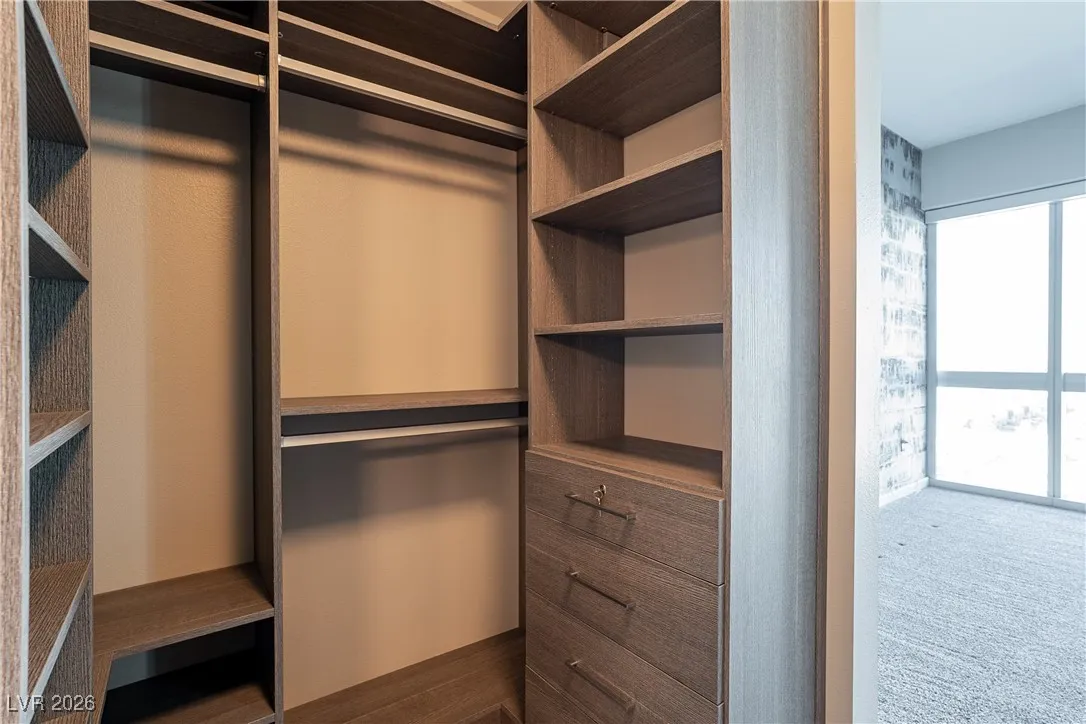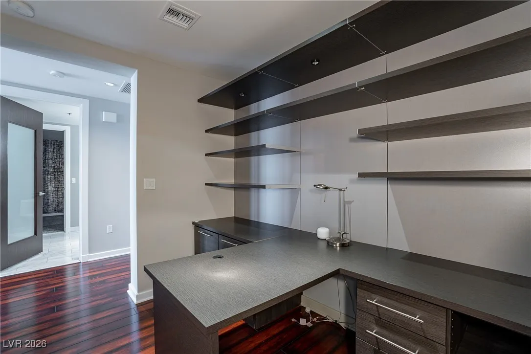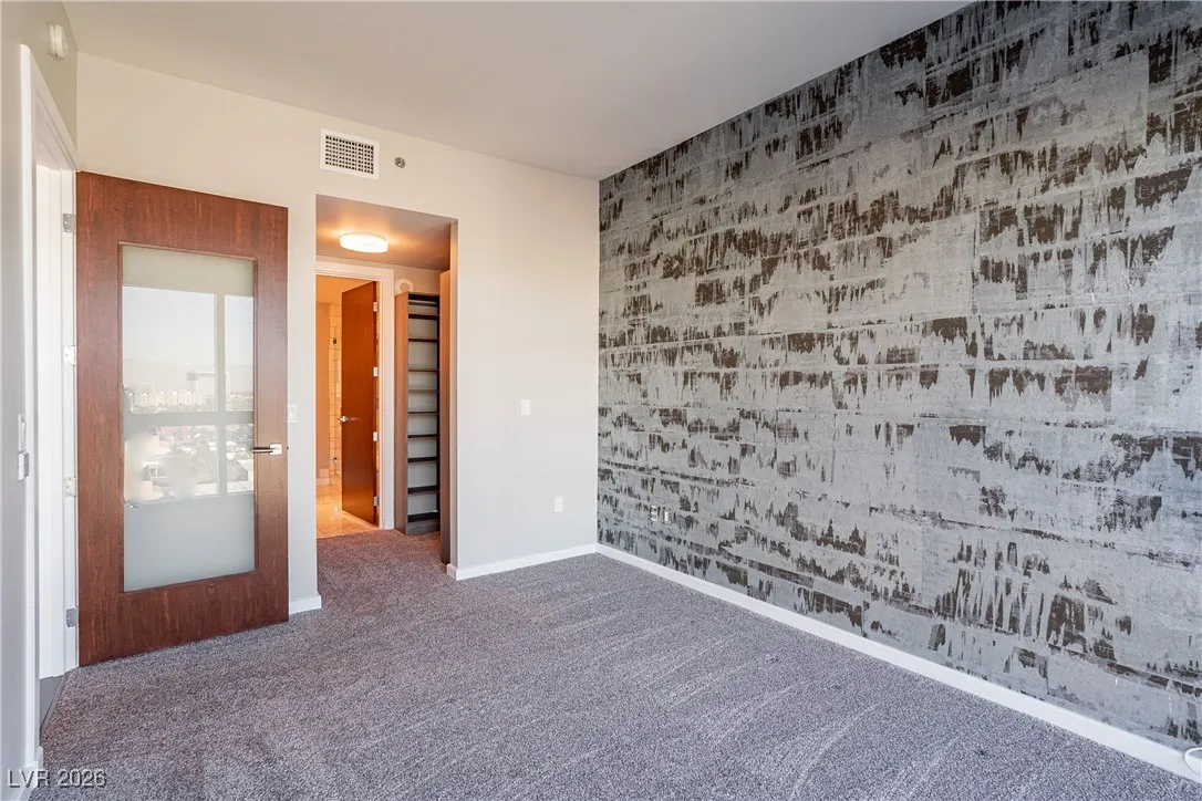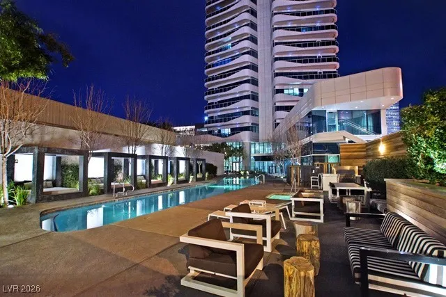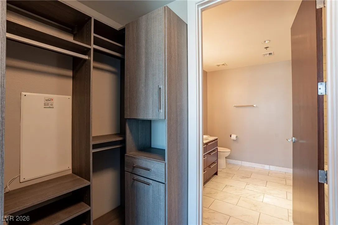 Welcome to luxury living at The Martin! This stunning 2-bed, 2-bath condo on the 10th floor offers panoramic views of the Las Vegas Strip, available on 8/1/24! The open-concept living area features floor-to-ceiling windows, filling the space with natural light. The modern kitchen boasts high-end stainless steel appliances, granite countertops, and ample storage. The primary bedroom has an en-suite bathroom with dual vanities, a soaking tub, and a glass-enclosed shower. The second bedroom has access to a full bathroom with a stand-up shower and single sink. Additionally, there is a den area set up for an office space. Other features include hardwood flooring, in-unit laundry, and a secure parking space. Residents enjoy amenities like a fitness center, resort-style pool and spa, private cabanas, sauna, business center, and 24-hour concierge. Located minutes from dining, entertainment, and shopping, this property offers the best of Las Vegas living. Schedule your showing today!
