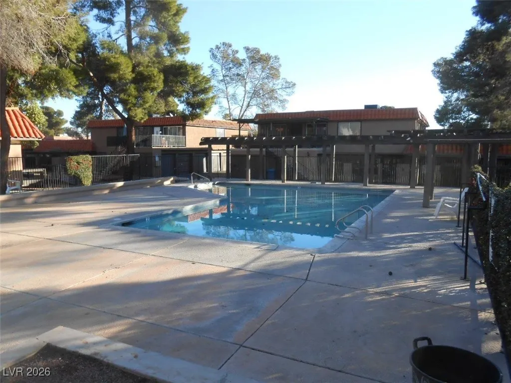 All tile & laminate flooring (no carpet). Counter tops & kitchen cabinets. Upstairs unit w private balcony. Unit is over top garages, all appliances, 1 car garage & open parking. Plenty of greenbelts, pool, clubhouse, tennis courts.