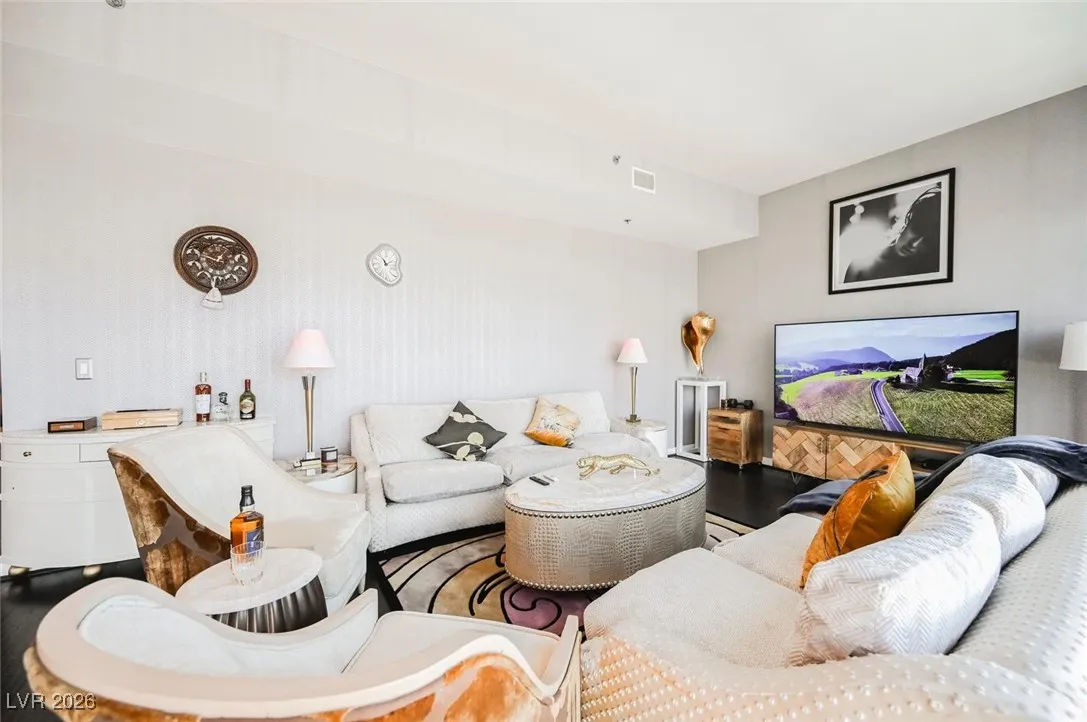 BEAUTIFUL CONDO AT PANORAMA TOWERS. FULLY FURNISHED. CONDO HAS MANY UPGRADES. WALKABLE DISTANCE FROM Las Vegas BLVD., CITY CENTER AND COSMOPOLITAN. MINUTES DRIVE FROM THE AIRPORT, AND RAIDERS STADIUM. ASSOCIATION INCLUDES LIMO SERVICE, CONCIERGE, POOL, RACQUETBALL AND GYM, PET PARK, GAME/MOVIE ROOM. GORGEOUS SUNSET VIEW OF THE MOUNTAINS. CONDO HAS MANY UPGRADES, INCLUDING STAINLESS STEEL APPLIANCES, BACKSPLASH, CUSTOM FLOORING AND WALLPAPER.