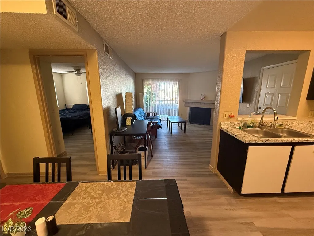 Beautifully furnished one bedroom condo located on the second floor within a gated community in central Las Vegas. This inviting residence features an open-concept floor plan with a cozy fireplace in the living room, a private balcony, and a bright kitchen that opens to the dining area creating a comfortable space for everyday living and entertaining. Residents enjoy access to community amenities including a swimming pool, clubhouse, and fitness center. Conveniently located near Meadows Mall, popular restaurants, walking trails, schools, parks, and easy access to the I-95 freeway. Offering both comfort and convenience in a prime central Las Vegas location.