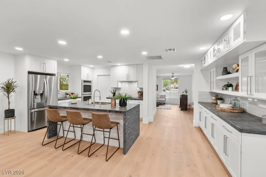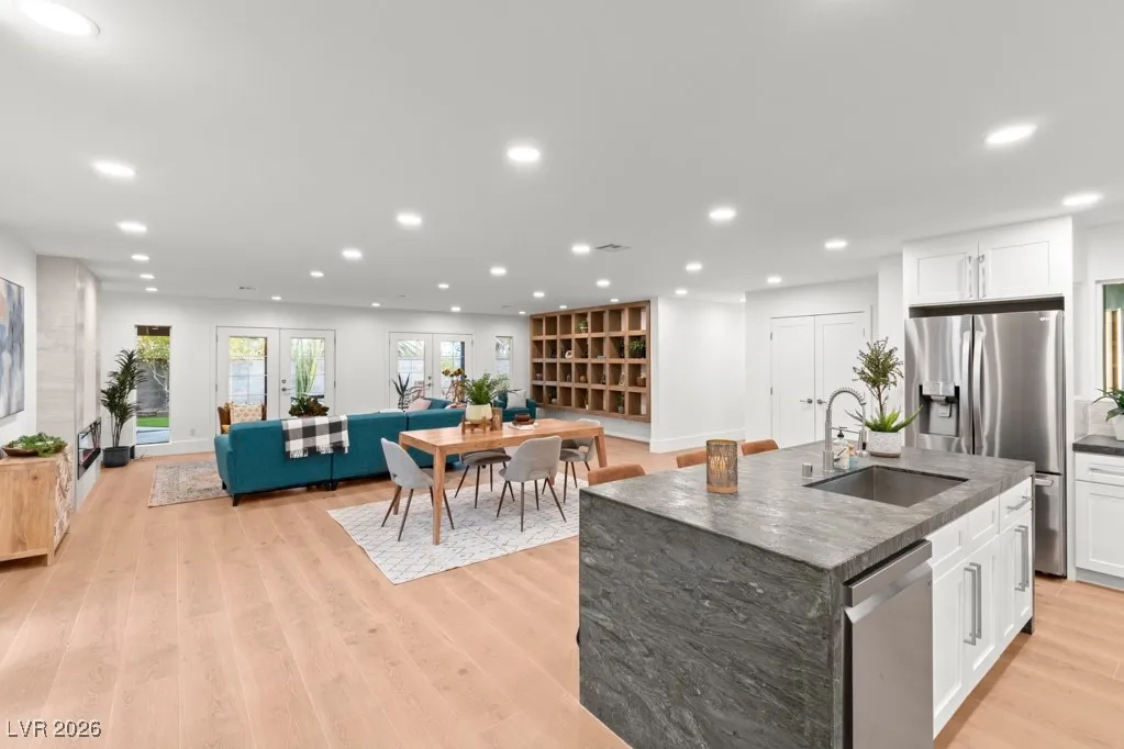 Experience Urban Luxury Living in the Heart of Vegas’ Historic Downtown. This gorgeous home in Las Vegas’ booming Arts District was redesigned and fully renovated to maximize indoor-outdoor living and features an absolutely unique “Outdoor Entertainment Hub” you have to see for yourself. All 3 bedrooms have french door to back patio, w/large den as a possible 4th bedroom. Home has Solar. This is another creation of Paragon AMG, the top provider of premium renovated properties in the Las Vegas valley. They are dedicated to elevating the standard of home renovations in Las Vegas – and specialize in creating retro-modern spaces that seamlessly blend vintage charm with contemporary design. Paragon’s commitment is to Quality First: Quality in design, Quality in materials and Quality in workmanship. “We are passionately doing our part to elevate our community and we seek to share our enthusiasm in celebrating the energy and vibrancy of creatives and small businesses in this city we love.”
