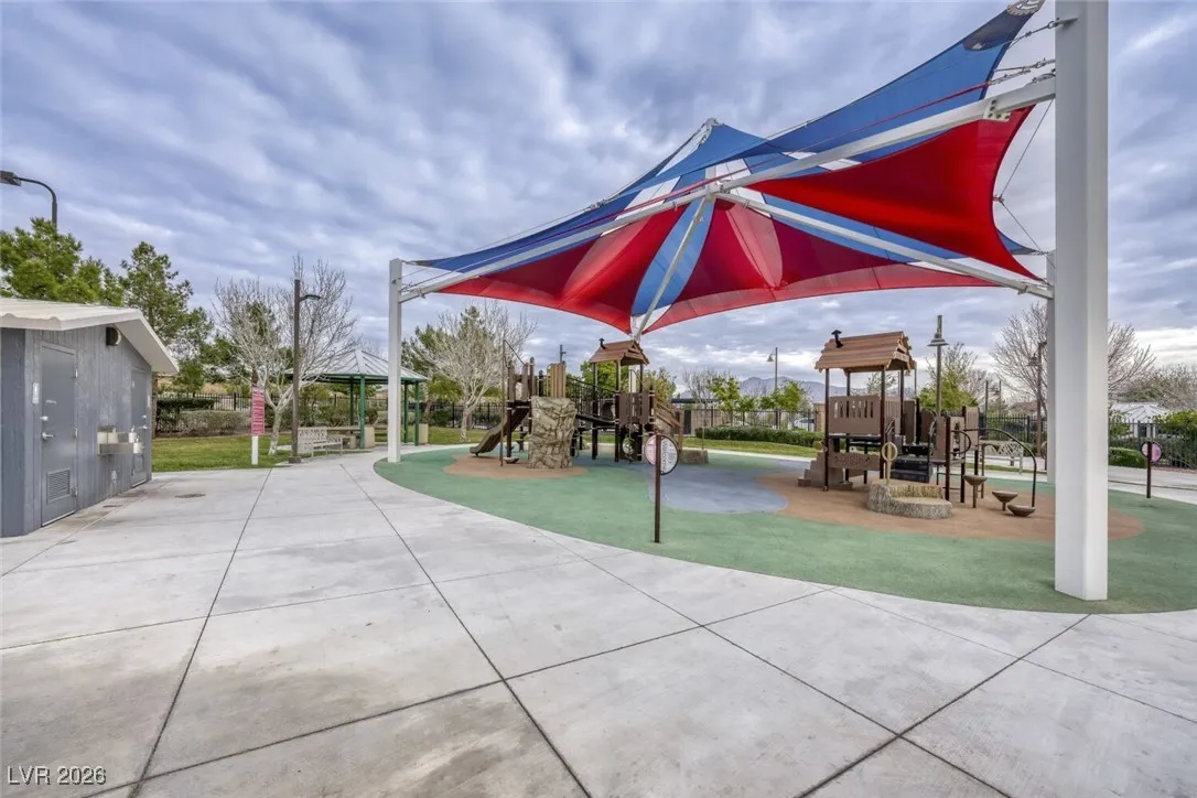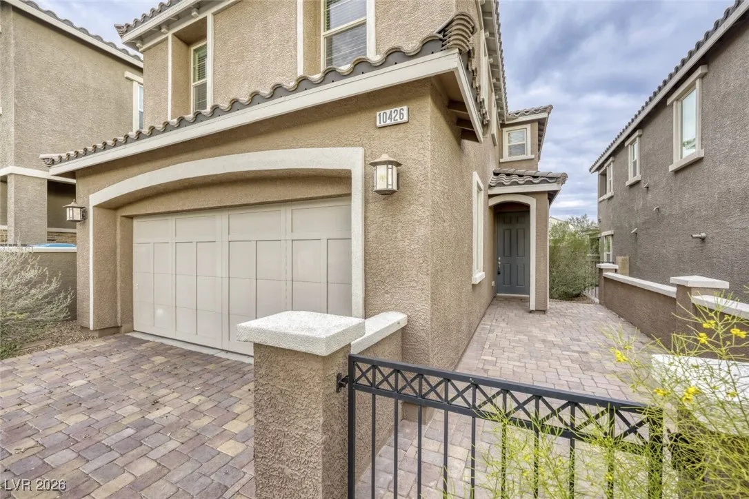 Welcome to this stunning 2020 build located in Skye Canyon. This home is nestled within a secure Gated Community, offering a plethora of amenities including a community pool, parks, tennis courts, a community gym, and playgrounds. The house itself boasts 3 spacious bedrooms & Tile flooring throughout the downstairs. The primary bedroom is conveniently located upstairs, complete with a spacious walk-in closet and an en suite bathroom featuring dual sinks. The kitchen is a chef’s dream with a kitchen island, stainless steel appliances, quartz countertops, recessed lighting, and a pantry. The backyard features a covered patio & gorgeous turf. Easy to maintain and perfect for outdoor entertaining. An added benefit is the EV charging outlet for your electric vehicle. This home is a perfect blend of comfort and modern living. As an extra added perk, Trash, Sewer and Tenant Portal Fee are included in rent!