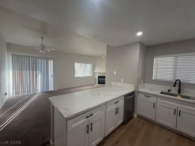 Beautiful 2 bed/2 bath upstairs condo in Spring Valley! One covered parking space. Front living room with a fireplace. Dining area. Updated kitchen has quartz counters with a breakfast bar and stainless-steel appliances! Master bath has double sinks! Ceiling fans. Has a balcony! Located in a gated community with a community pool, spa, clubhouse, and exercise room!!
