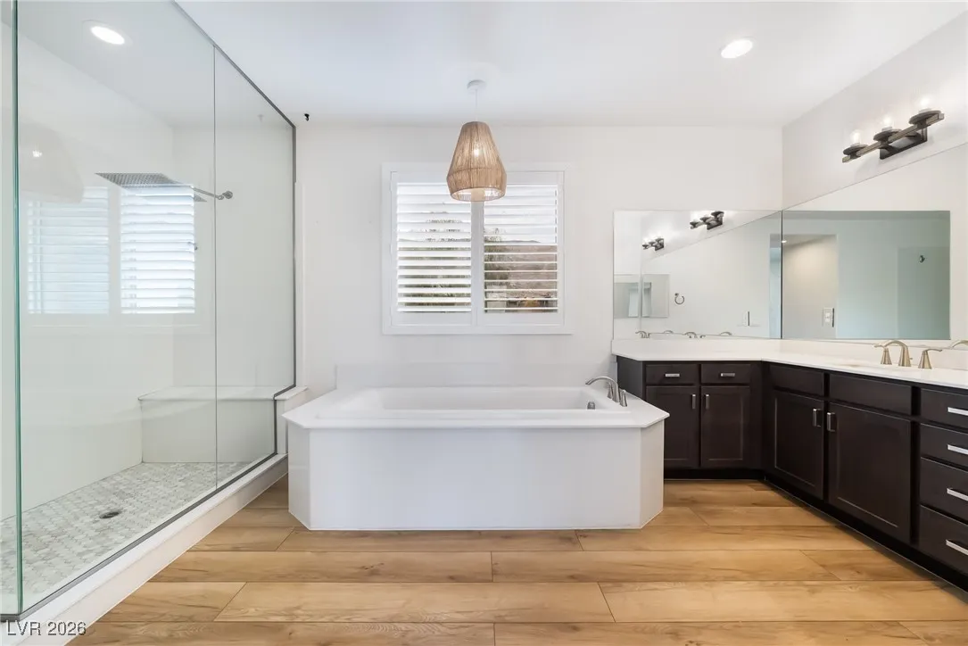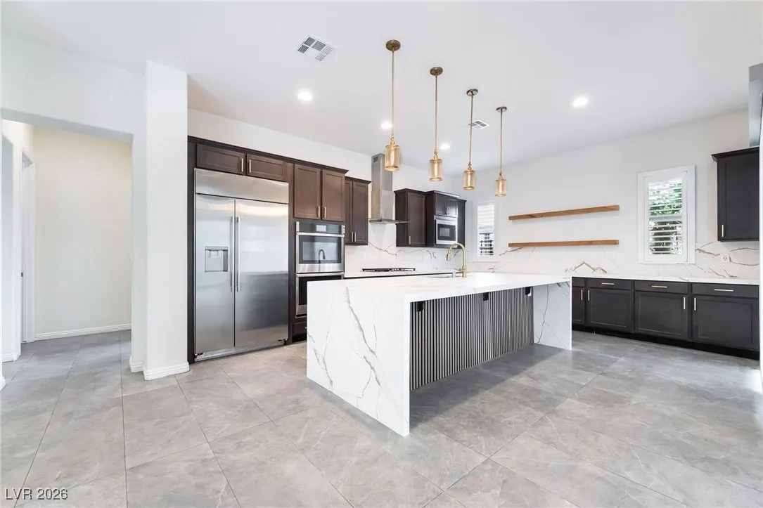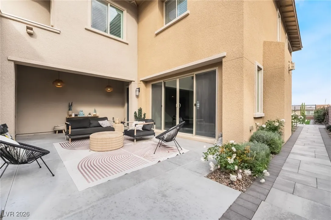 Step into modern elegance w/ this recently built South Summerlin home, perfectly situated just minutes from Downtown Summerlin. A welcoming courtyard sets the tone for stylish living, while the open floor plan features gourmet kitchen w/ large quartz island, top-of-the-line ss appliances, ample cabinetry, & home water softening & alkaline water system. Expansive sliding glass doors in the living areas bring in natural light & open to a stunning backyard retreat w/ modern pool, desert landscaping, firepit lounge, & built-in gazebo complete w/ an outdoor kitchen & grill area. Inside, downstairs bedroom w/ full bath offers flexibility, while upstairs boasts a spacious loft w/ built-in cabinetry & floating shelves, along w/ luxurious master w/ private balcony, custom walk-in closet w/ center island, & bath w/ stand-alone tub, walk-in shower, & dual sinks. Addt. bedrooms are generously sized w/ thoughtful design, completing this entertainer’s dream in one of Summerlin’s prime locations.