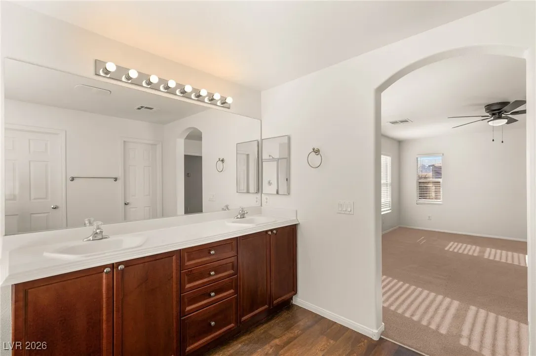 Enjoy the best of Southern Highlands living—without the extra HOA—in this fantastic 3-bedroom plus loft home located in a desirable gated community with a pool and spa. Tucked away at the end of a cul-de-sac, this home features a long, extended driveway and a welcoming open floor plan. Inside, you’ll find a spacious kitchen, upgraded laminate flooring throughout most of the home, and newer carpet in the bedrooms, all in excellent condition. The upstairs loft offers the perfect space for a home office, study area, or second living room. The backyard is ready to enjoy with low-maintenance pavers, raised planters, and charming string lights—ideal for relaxing or entertaining right away. Conveniently located just minutes from Southern Highlands, shopping, and easy highway access, this home checks all the boxes. Schedule your tour today!
