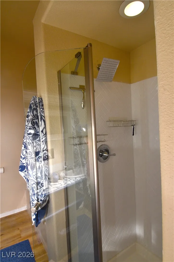Very cute apartment on Frenchman’s Mountain. This is a lovely one story one bedroom cutie. Views of the strip and downtown while grilling on the back patio. The bedroom has a king size bed with ensuite. The ensuite is complete with separate tub and shower and walk in closet with tons of room. A spacious living room has natural light and a city view. The kitchen has a cook top and huge toaster oven and eating nook. There is also an office nook and the unit is complete with washer and dryer. Two miles away is an olympic pool, water slide park and gym for just $3 a visit. Enjoy this peaceful neighborhood.