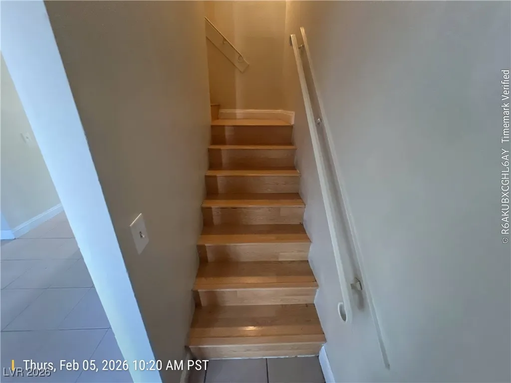 2 story Townhouse in the north end of Sunrise Manor. 2 bedrooms, 2 and 1/2 baths. The kitchen has plenty of cabinet space & a dining room. The entire main floor is ceramic tile and and the living room has a gas fireplace. the entire upstairs has wood laminate flooring, each bedroom has its own private bath. Close to Nellis AFB. $1150 RENT + $20 TRASH + $31 SEWER = $1201/MONTH