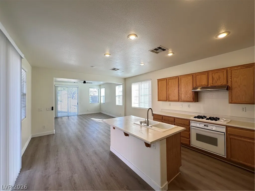 Beautiful Summerlin home with easy access to nearby shopping. Features one bedroom with a full bath downstairs and new waterproof laminate flooring throughout the main bedroom, guest bedroom, hallway, first-floor bedroom and bath, entry, kitchen, living room, laundry room, and storage. Upgraded with recessed lighting, kitchen island, built-in cooktop and oven. Large backyard and beautifully landscaped front yard. Price includes $50/month for trash and sewer.