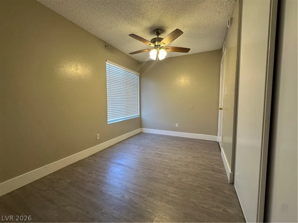 Ideally located near UNLV, local dining, and retail hubs. This upstairs, single-story condo features a two bedrooms, two full bathrooms plus an extra room perfect for a home office. Residents will appreciate the added security of a gated front patio and the convenience of a carport located directly beneath the unit. All appliances included. Community amenities include a clubhouse and pool.