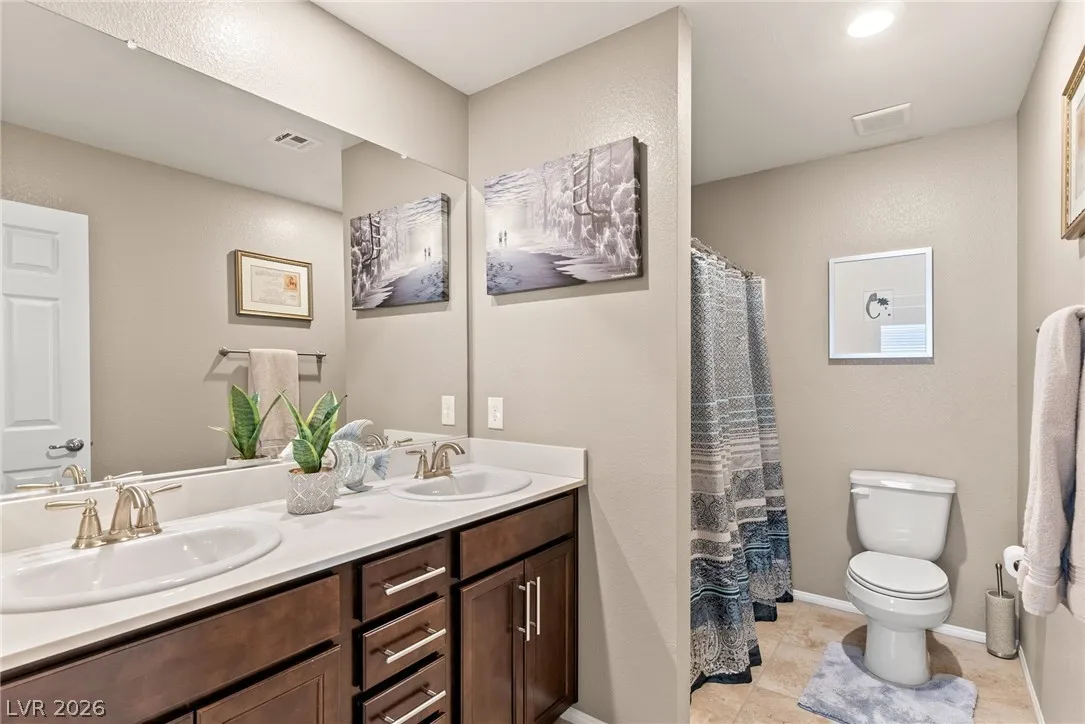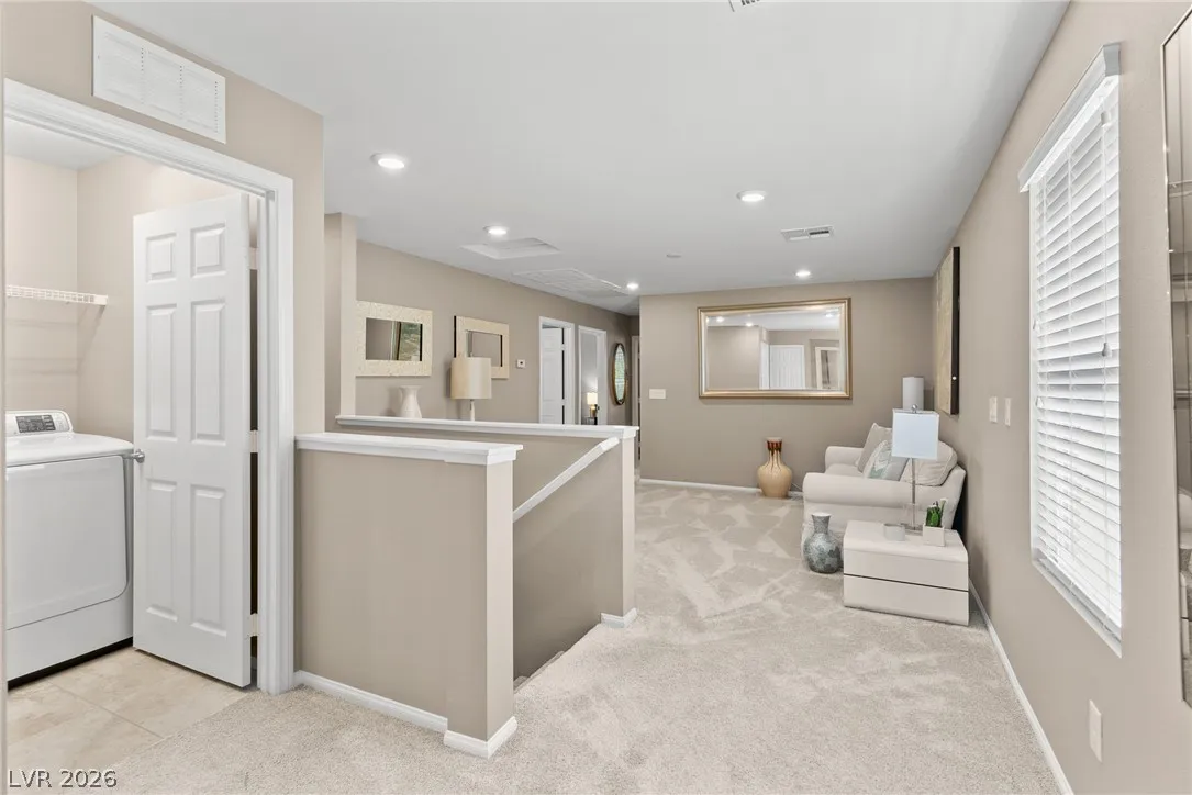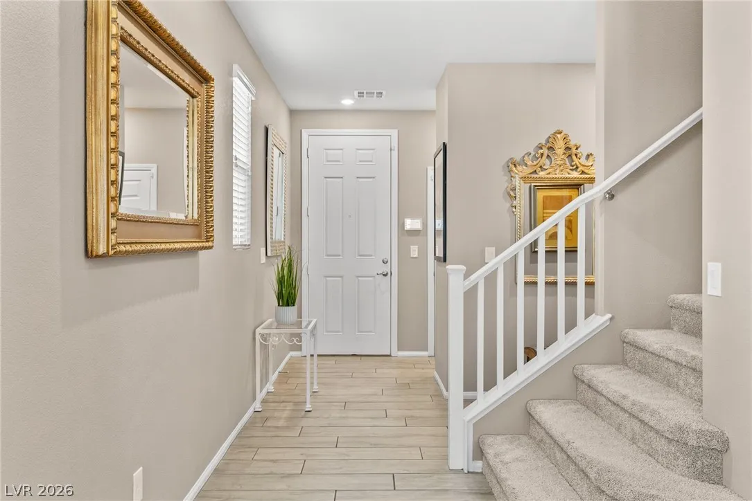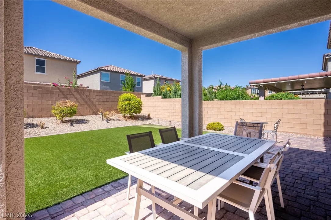 On the second level you’ll find the primary suite with separate tub and shower, double vanity sinks and a large walk-in close, 3 bedrooms, and Loft. The rear yard is beautifully landscaped featuring a covered patio and grass turf. This home is located in the gated community of Bellazo is in the heart of Spring Valley, just minutes from shopping, dining, Spring Valley Medical Center and the Las Vegas Strip. Alarm, Cable and Landscaping included!