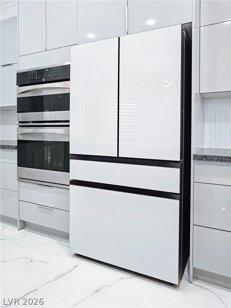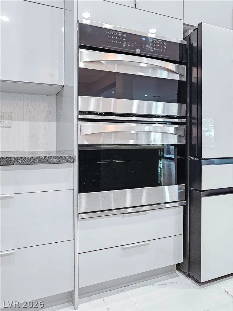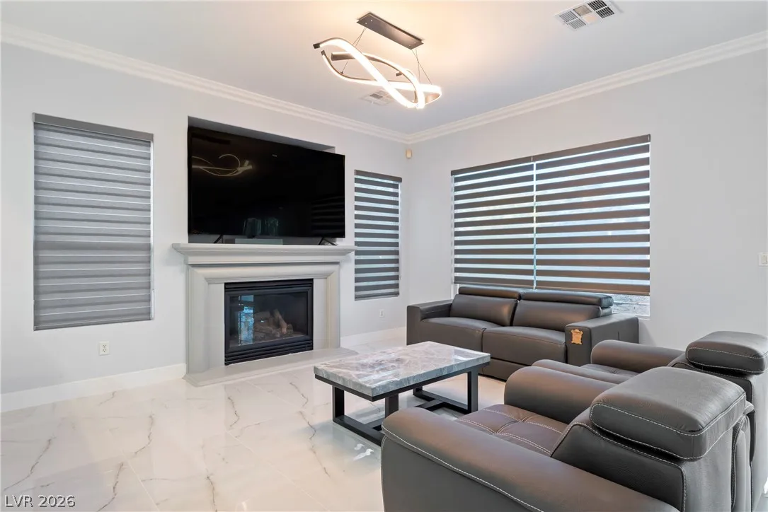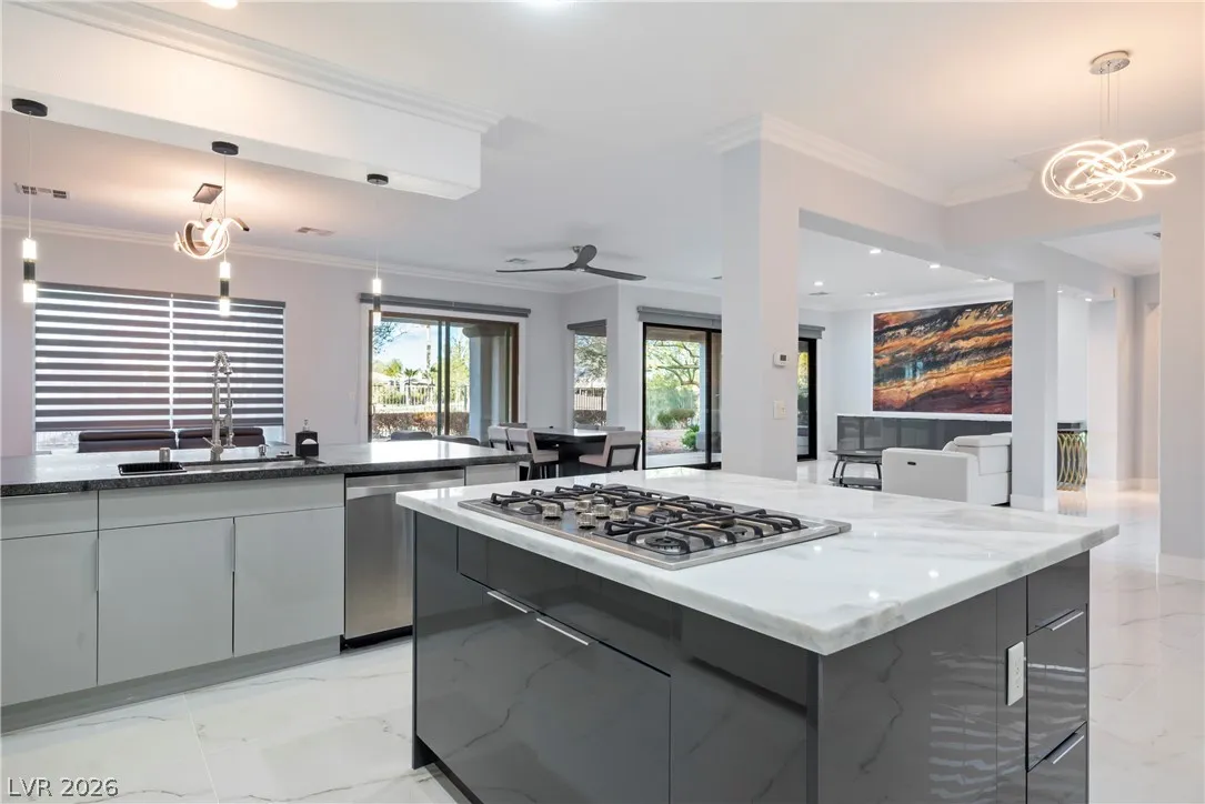 Beautifully remodeled in a sleek, modern style, this exceptional home is located within the desirable Siena community, perfectly positioned along the 7th fairway of the golf course. The backyard offers direct access to the course along with serene golf and mountain views, creating a truly special setting. Designed with an open and airy floor plan, the home is filled with natural light and features three bedrooms and two-and-a-half baths. A solar panel system is installed. The gourmet kitchen showcases contemporary European-style custom cabinetry, quartz countertops, a built-in oven and microwave, and a cooktop grill. All bathrooms have been thoughtfully renovated with stylish finishes. Large-format tile flooring, a multi-sliding patio door, and motorized blinds in the living area complete this move-in-ready home.