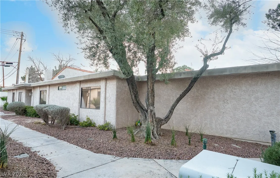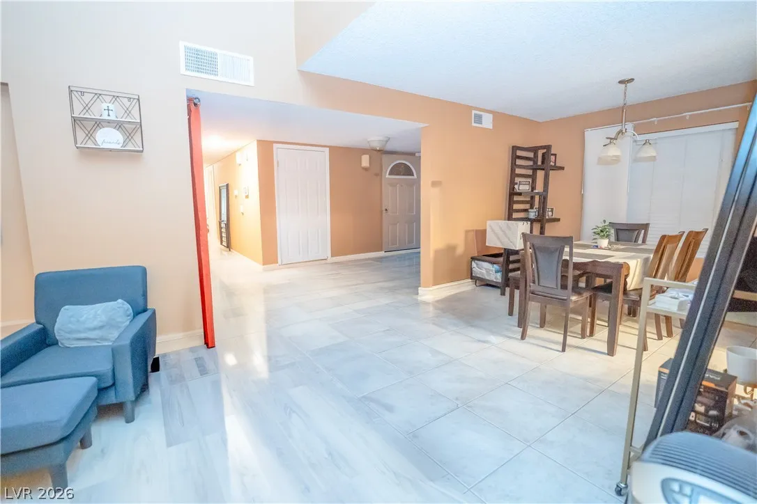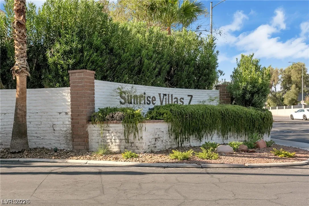 Located in the established Sunrise Villas community, this updated townhome offers vaulted ceilings, warm neutral tones, and a bright kitchen overlooking lush greenery. A central atrium brings in abundant natural light throughout the home. The floor plan includes three bedrooms, including a refreshed primary suite with modern finishes. Additional features include a well-organized laundry room with upper cabinets, an attached two-car garage, and a private courtyard. Residents enjoy access to a beautifully maintained community pool surrounded by mature landscaping. Conveniently situated near UNLV, medical centers, golf, and The Strip.
