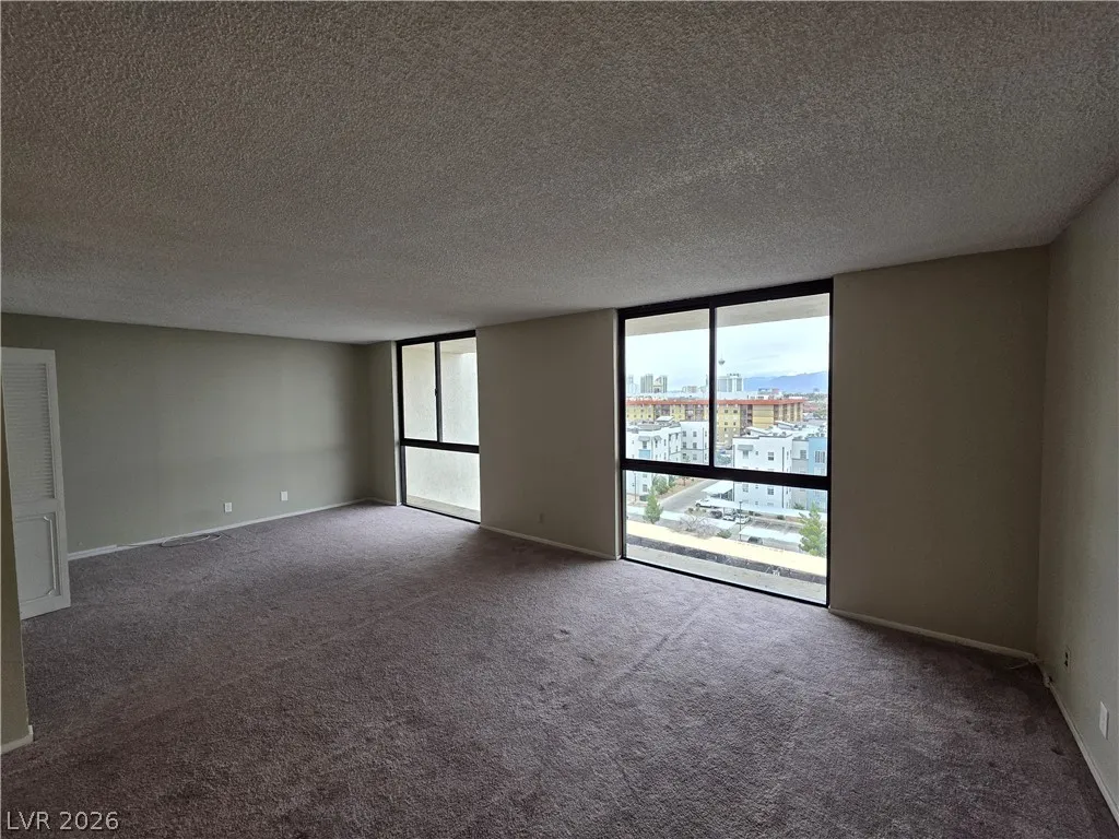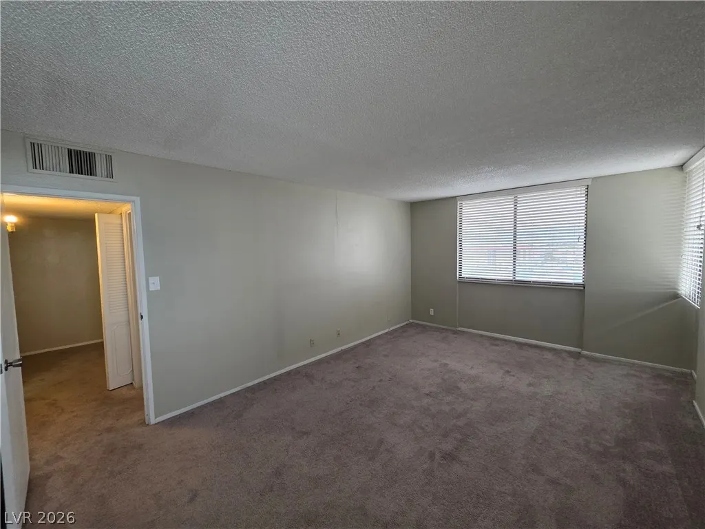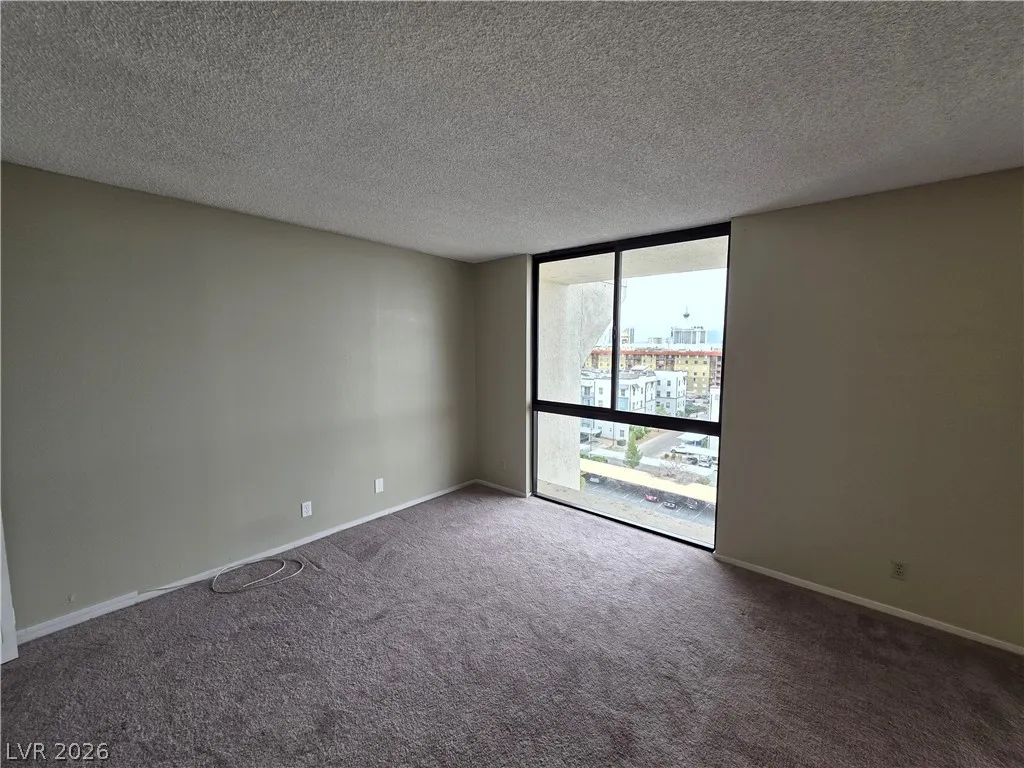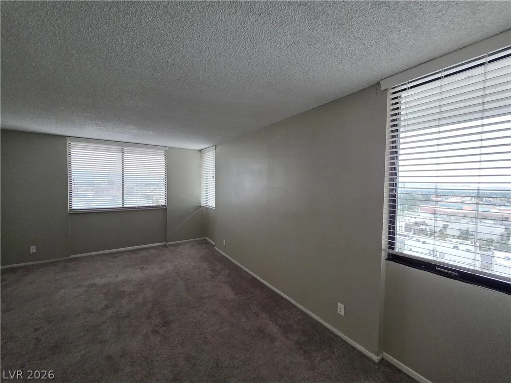 Enjoy the tranquility of this spacious home, which features clean, bright bedrooms with plush carpeting and large windows offering stunning city views. The modern gray walls provide a cozy atmosphere, complemented by adjustable blinds for perfect lighting control.