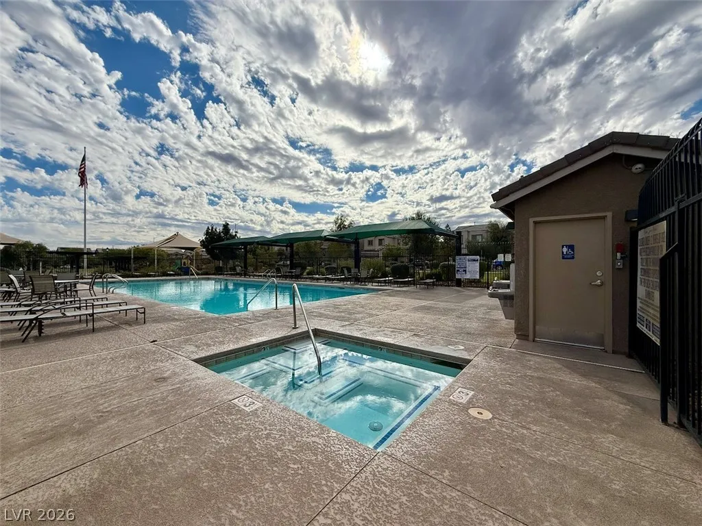 Beautiful 4 bed Single Family House in Henderson. Nearby Sunset Casino, Costco, Walmart, Galleria Mall, lots of stores for your everyday needs. Big kitchen Island w/ stainless steel appliances, granite back splashes, dark cabinets, with soft-close doors. Granite counter top in kitchen, upgraded tile thru first floor, stone pavers in backyard. Great community with big park, playground, swimming pool & spa.