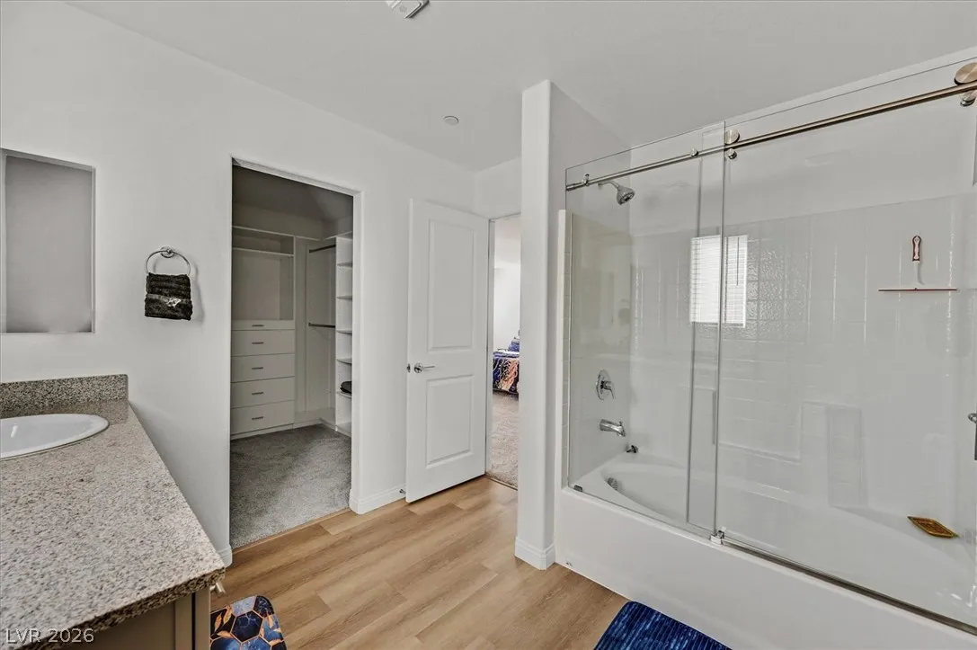 Picture-perfect townhome shows like a model- nearly new and immaculate. The open floor plan is great for entertaining. Upstairs the primary bedroom suite with a balcony is separate from the other 2 bedrooms. Custom California closet. Laundry upstairs, in the Mosaic community with 3 pools (adult, family, kids), play area, 1/2 basketball court, BBQ area, and 2 dog parks.