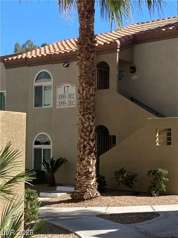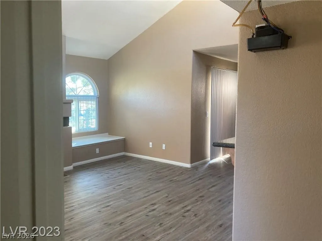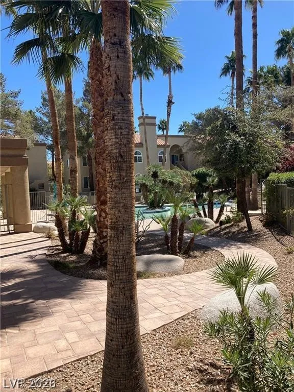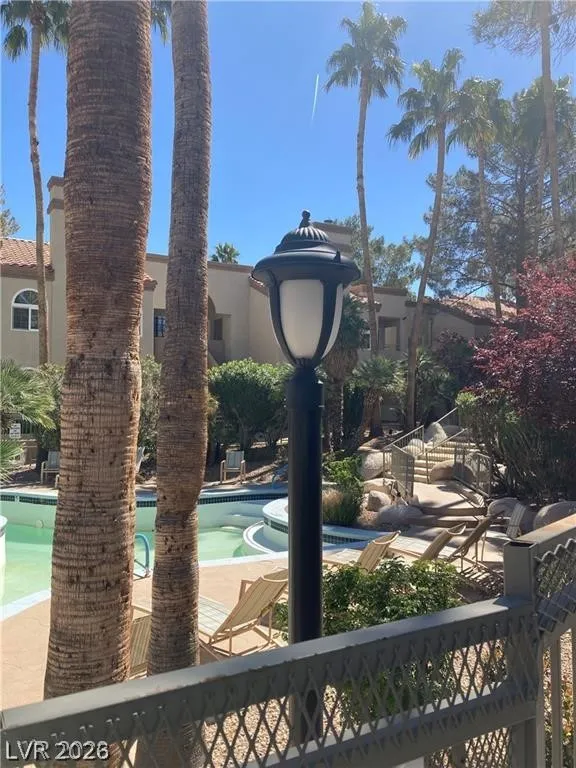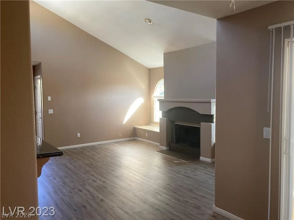 Upstairs two-bedroom remodeled unit featuring updated flooring and fresh paint throughout. Each bedroom includes its own private bathroom. Bright living room with wood-burning fireplace and vaulted ceiling. Kitchen offers stainless steel appliances and abundant natural light from numerous windows. Washer and dryer included in-unit. Community amenities include pool and playground.