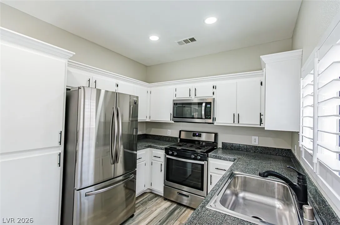 Welcome to the Green Valley Condo, a stunning 2-bedroom, 2-bathroom residence located in the vibrant city of Henderson, NV. This home is nestled within a gated community. The condo boasts a sleek, modern design with no carpet, making it easy to maintain and perfect for those who prefer hard flooring. The spacious 2-car garage provides ample storage and parking space. Inside the master bedroom is a ceiling fan for your comfort. Step outside onto your private balcony, a perfect spot for enjoying the Nevada sunshine. As a resident, you’ll also have access to the community’s top-notch amenities. Stay active in the community fitness gym, or take a refreshing dip in the community pool. The Green Valley Condo offers a lifestyle of comfort and convenience, making it a perfect place to call home.