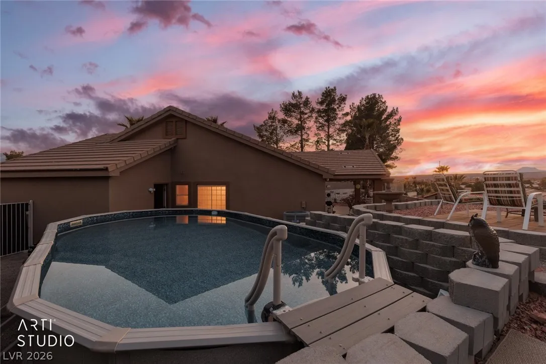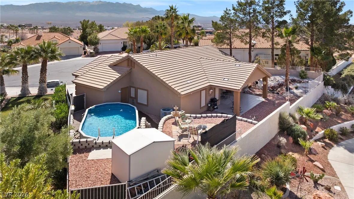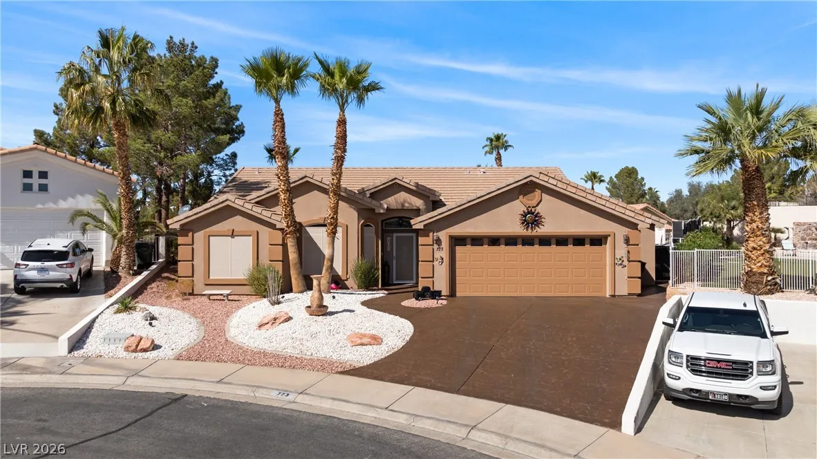 This upgraded, one-story, custom-built home on an elevated view lot in the NON-HOA community of Chaparral Estates is sure to impress! The back of the home has an extended covered patio with a mechanical retractable patio shade, a waterfall, stunning views from the patio and an elevated sitting area, and a private pool. The kitchen has granite counter tops, tile backsplash a walk-in pantry and stainless steel appliances. This home has 3 bedrooms; 2 bathrooms; living room, kitchen, dining area and a laundry room with washer/dryer/cabinets. The flooring is tile and laminate. Other perks are ceiling fans, granite counter-tops throughout, walk-in closets, two-toned interior/exterior paint, 9 hard-wired security cameras, exterior sun shades, water softener and reverse osmosis. There is an over-sized, 2 car garage (646SF) with a golf cart area, epoxy finish on floors, sink, ceiling fan and over-head storage space. The driveway is stamped and sealed. This property is truly one of a kind.