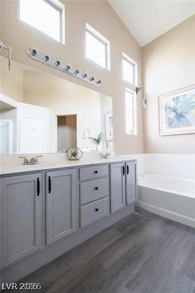 Lovely single-story home in Summerlin on a corner lot. Open floor plan with vaulted ceilings. Kitchen features granite countertops, island, tile flooring, and pantry, opening to the family room with fireplace and ceiling fan. Spacious primary bedroom with walk-in closet and double sinks in the primary bath. Freshly painted with new vinyl flooring, plus brand new dishwasher and microwave. Covered backyard patio and walking distance to community park. Furniture can be removed if desired.