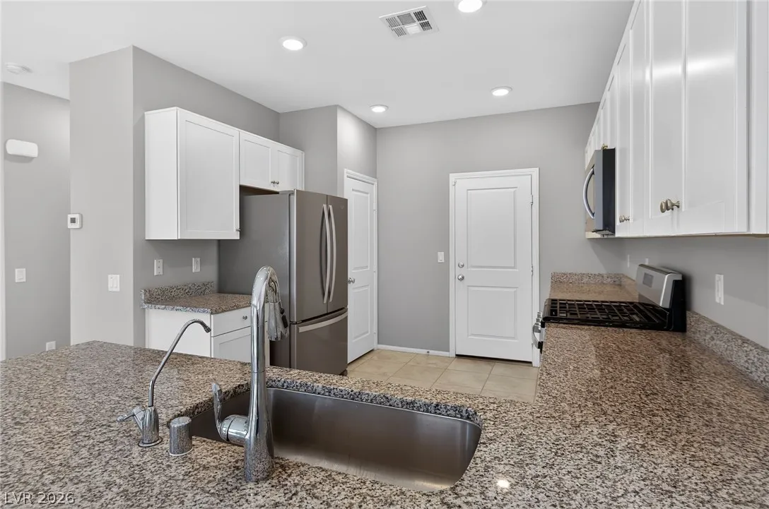Kitchen features granite countertops, all stainless-steel appliances and plenty of storage space.