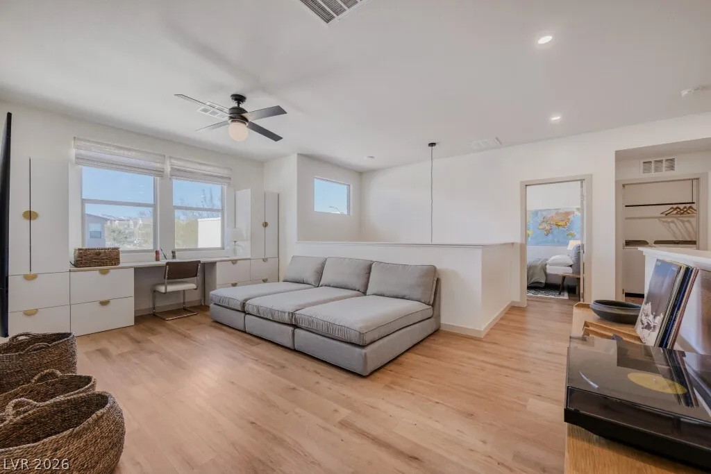 You’ve found a model like two-story (5BR/4.5BA) Skye Canyon home situated in a gated community, conveniently located minutes from highways, shopping, restaurants, schools, hospital, biking/hiking trails, and Mount Charleston. This home includes ~$150,000 in Seller upgrades, such as: new backyard pool, completely renovated flooring & plenty more. A welcoming first floor is like entering a tastefully decorated Joanna Gaines home, including: kitchen, dining & living rooms, downstairs bedroom w/bath, and fitness room (or den/office). The kitchen includes new appliances, updated cabinets, countertops, lighting & large walk-in pantry. Upstairs you’ll find 4 more BRs/3BA’s, a laundry room, & loft. The primary suite includes a renovated bathroom and large walk-in closet. The rear yard provides a covered patio, artificial turf & the new pool for fun/relaxation. The spacious 3-car garage has an epoxy floor, water softener and offers plenty of extra storage space. Truly a must-see home.