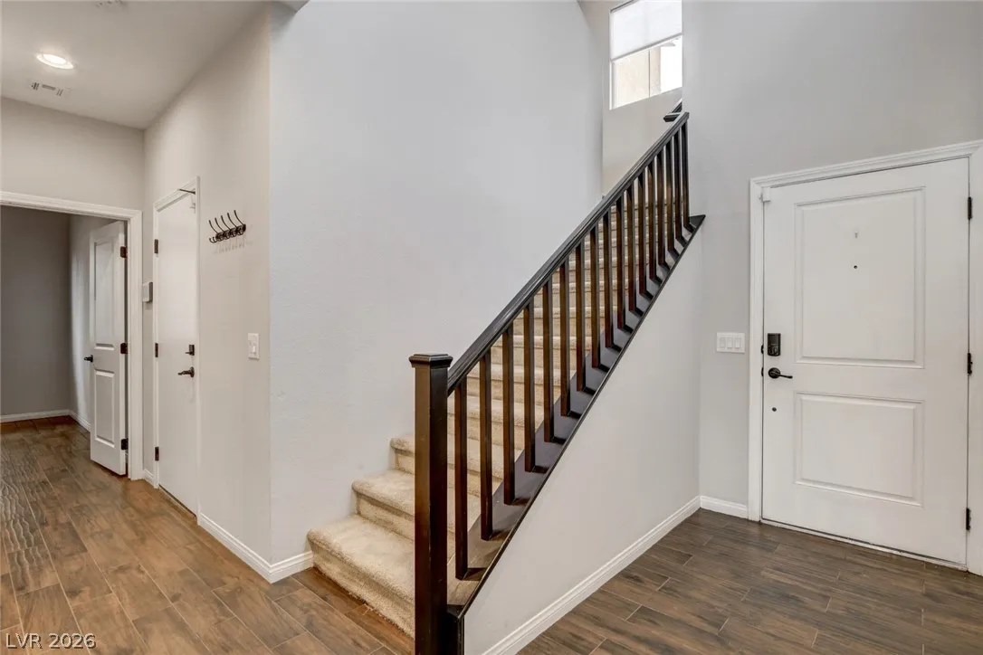 Spectacular 4 Bedroom, 2 Story Home near Aliante! This home features a Modern Look with Solar Energy, Spacious Open Floorplan, Synthetic Grass in the backyard with a Covered Patio for Summer BBQs, Loft Upstairs for Entertainment, Bedroom Downstairs for Guests, and Easy-to-Maintain Landscaping! This property is inside a Gated Community with a nearby playground for fun and convenient location next to the freeway with many local restaurants and amenities!