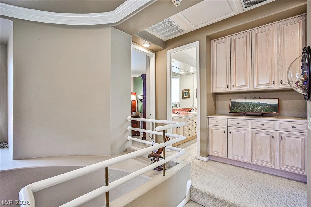 Spanish Trail Country Club, a 24-hour guard-gated golf & country club community. This two-story luxury home with a main-level primary suite sits at the center of the community, surrounded by the private 27-hole Robert Trent Jones Sr./Jr. golf course. Set on a private pie-shaped cul-de-sac lot with mature trees, no homes behind, an oversized yard, sparkling pool, and separate walk-in spa. Inside, a dramatic floating spiral staircase, high ceilings, and abundant natural light create an impressive entry. The main level includes separate living and family rooms, gas fireplace, powder room, 2-car garage, and a spacious primary suite with walk-in closet and large shower. Upstairs offers a generous landing with built-ins and two guest bedrooms, including a suite with its own balcony and sweeping golf views. Immaculately maintained with excellent potential to personalize, plus access to the community’s tennis, fitness, pools & club amenities.