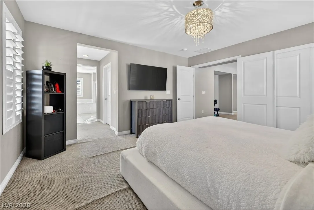add to the home’s already luxurious feel. Location, location, location! Take advantage of everything Summerlin has to offer, including pools, community centers, splash pads, parks, and more. This property is also zoned for some of the top schools in Las Vegas. Don’t miss the opportunity to make this home yours!