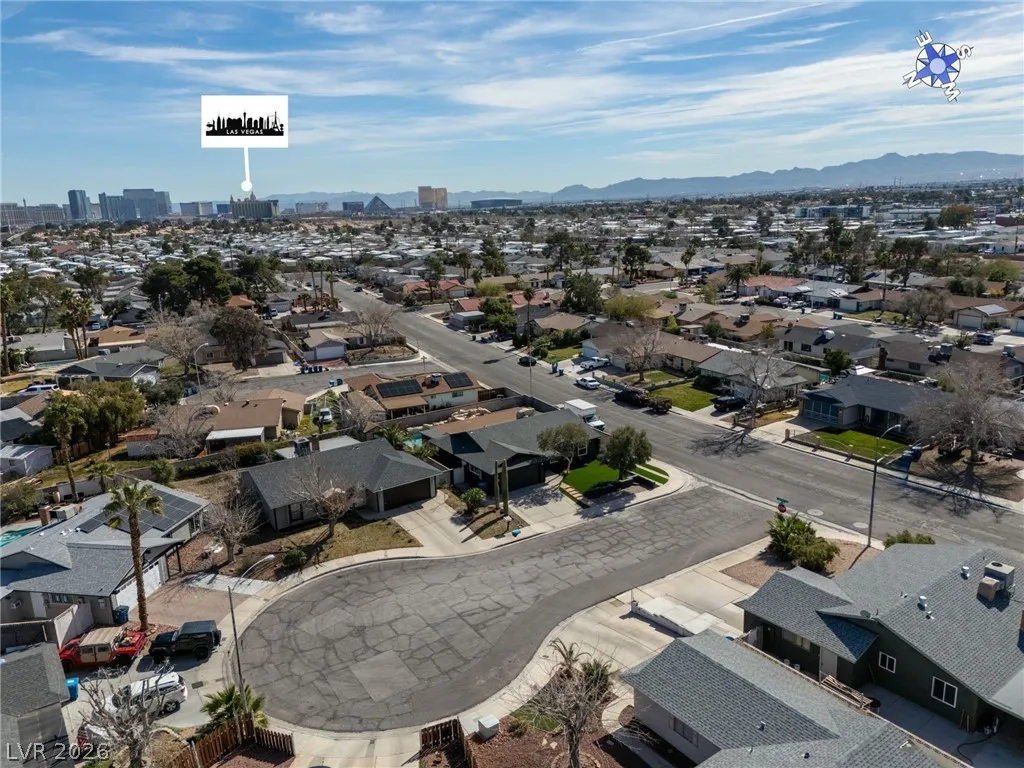 Welcome to this beautifully renovated single-story home located in the heart of Central Las Vegas! This 3-bedroom, 2-bathroom property offers a modern open floor plan designed for both comfort and entertaining. The fully updated kitchen features a spacious island, refrigerator, stove/oven, and plenty of cabinetry, all complemented by recessed lighting throughout the home. A washer and dryer are also included for added convenience. The exterior showcases modern gray tones and low-maintenance synthetic grass in both the front and backyard. Step outside to your private backyard oasis featuring a pool with a built-in slide and a covered patio area—perfect for relaxing or entertaining year-round. The property also includes a 2-car garage and rare RV parking equipped with a 220 connector, sewer hookup, and PVC drain for added convenience. This move-in-ready home offers style, functionality, and a prime Central Las Vegas location.