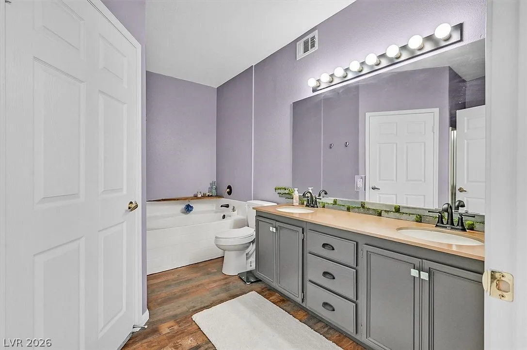 Come take a look at this beautiful upstairs unit (lives as as single level). This 2 Bed / 2 full bath condo is located in the desirable Chateau Versailles gated community. Unit features an open floor plan with a vaulted ceilings, balcony off the living room, spacious kitchen with large pantry, clean and bright appliances, granite countertops, separate laundry room. Spacious owners suite with ensuite features large walk-in closet, two sinks, separate shower & bath. Additional bedroom compliments the condo, features walk in closet & ensuite bath. 1 car attached garage for the unit.
