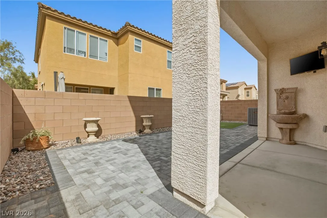 Welcome to this beautifully updated home in the highly sought-after Mountain’s Edge community, where charm, convenience, and lifestyle come together. Situated on a desirable corner lot with guest parking just steps away, this home offers both privacy and practicality. Inside, you’ll find luxury vinyl plank flooring throughout, fresh interior paint, plantation shutters, and stylish upgrades that create a modern feel. The kitchen features sleek LG black stainless steel appliances and flows seamlessly into the living spaces, perfect for everyday living or entertaining. Major systems updated, including a newer AC and heater within the last 5 years. Step outside to a peaceful backyard retreat featuring pavers, potted plants, and low-maintenance turf, an inviting space to relax or host friends. Located within the vibrant Mountain’s Edge master-planned community with parks, and trails, this move-in ready home offers comfort, style, and a true sense of neighborhood living.