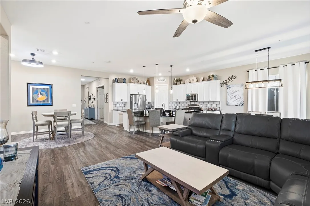 Welcome to this meticulously upgraded home in the guard-gated Heritage at Cadence 55+ community. The well-appointed kitchen features slide-out drawers under all cabinets, granite counters, stainless appliances, and a reverse osmosis system for pure drinking water. A whole-home water softener ensures premium water quality throughout. Smart home upgrades include Lutron lighting switches and a WiFi repeater for seamless connectivity. Step outside to your private patio and take in breathtaking Las Vegas Strip views — a rare and stunning backdrop for evening entertaining. The solar system covers the entire energy bill and generates surplus power back to the grid, delivering exceptional long-term value. Enjoy world-class amenities including a resort-style clubhouse, pool, fitness center, tennis courts, and 24-hour guard gate within Henderson’s premier master-planned Cadence community.