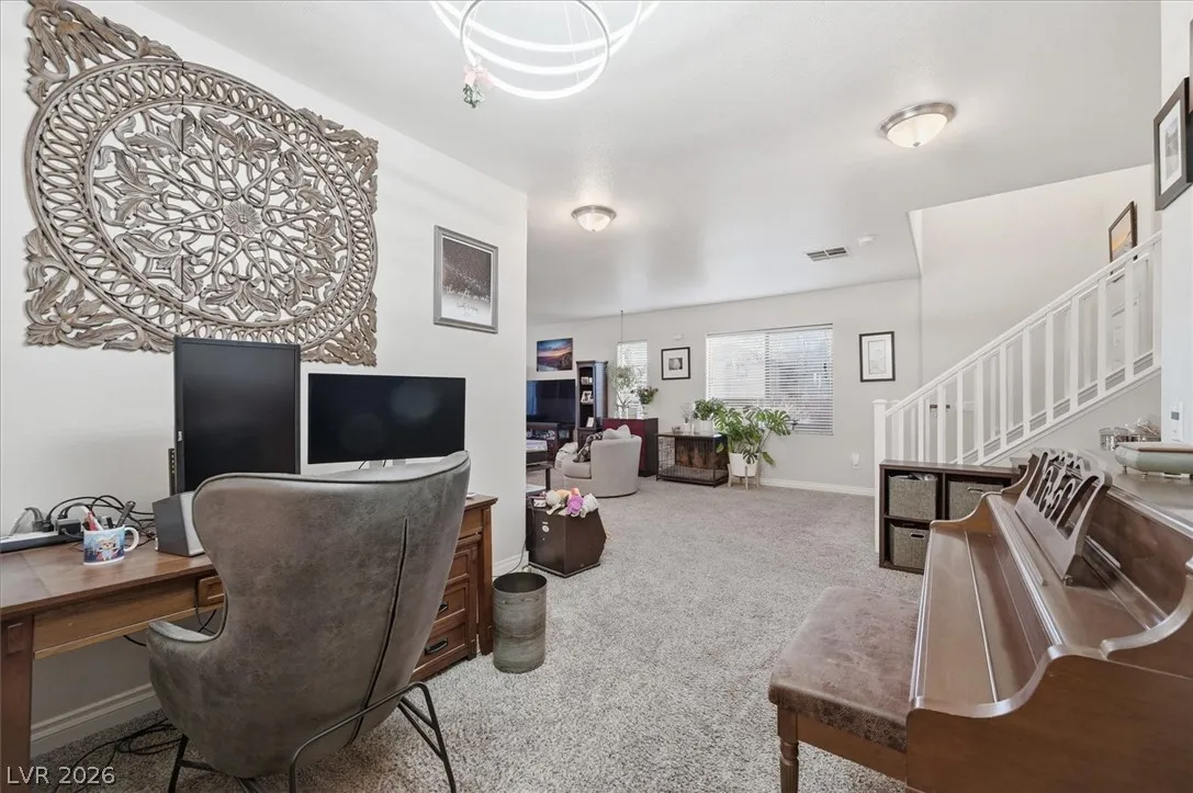 Beautiful two-story home on an elevated lot in desirable northwest Las Vegas. This well-maintained residence features a bright, open floor plan with spacious living areas, neutral finishes, and abundant natural light. The kitchen includes stainless steel appliances, ample cabinetry, and a center island that opens to the dining and living areas—perfect for entertaining. The home also features a water softener and reverse osmosis system for enhanced water quality. Upstairs offers generously sized bedrooms and a large loft ideal for a second living area, media room, home office, or play space. The primary suite includes dual sinks, soaking tub, separate shower, and walk-in closet. Enjoy a low-maintenance backyard with desert landscaping, patio seating, and fire pit, perfect for relaxing or gatherings. Conveniently located near parks, schools, shopping, dining, and major commuter routes.