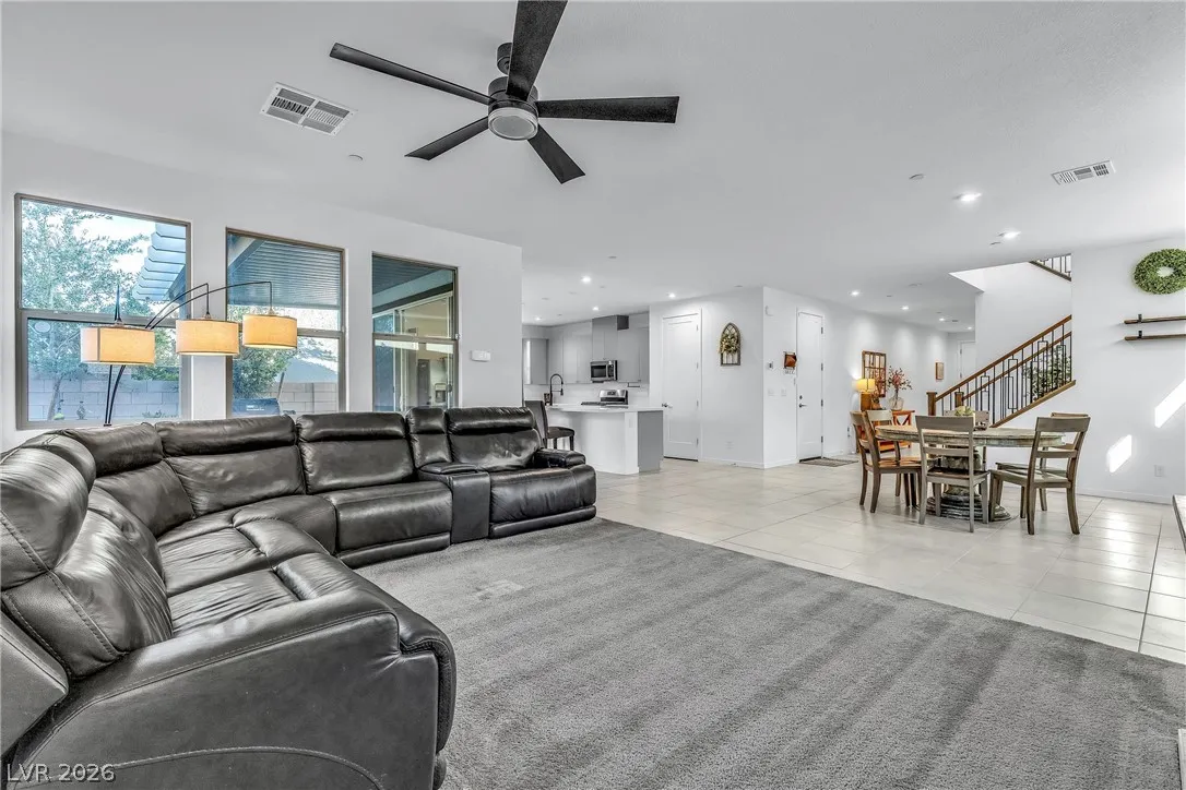 Welcome home to this beautiful 4-bedroom, 3-bath home in Inspirada Town Center, built in 2022 and priced to impress! The open and bright floor plan features a spacious great room, perfect for family time and entertaining. The stylish kitchen offers quartz countertops, stainless steel appliances, and a large island for casual meals or homework sessions. Upstairs, the primary suite provides a peaceful retreat with a spa-like bathroom and a walk in closet thats conveniently connected to the laundry room. This home also has a downstairs bedroom and 3/4 bath that is ideal for guests. Enjoy the low-maintenance backyard and covered patio for BBQs and outdoor fun. Located in the heart of Inspirada Town Center, you’ll love the community pool, parks, playgrounds, and top-rated schools—all just minutes from shopping and dining. Modern, comfortable, and move-in ready, this home has everything your family needs!
