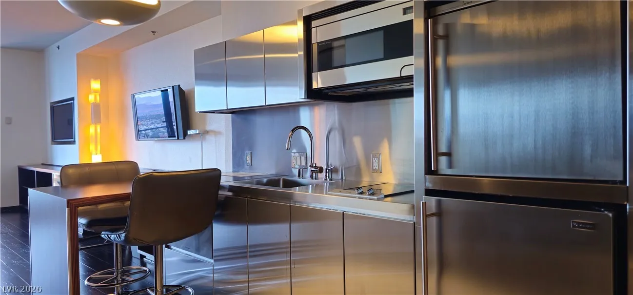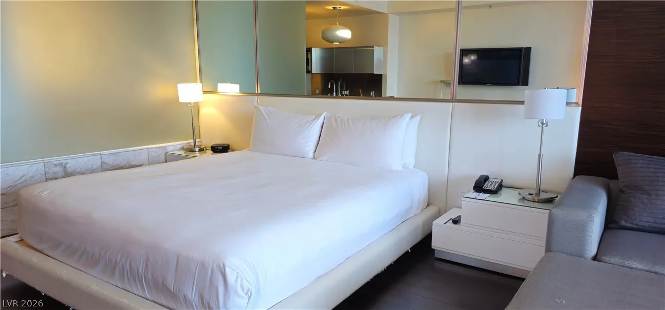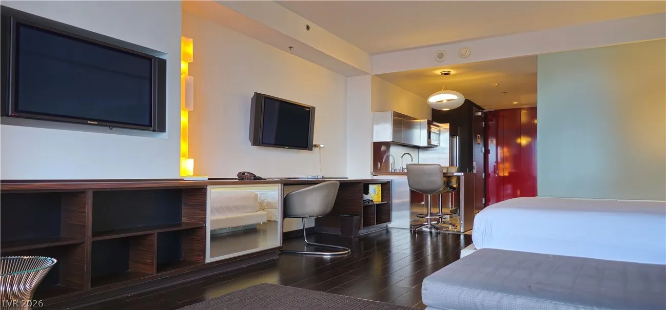 Fully furnished studio located on 36th floor with Mountain view. Modern studio with King bed and sofa sleeper, SS appliances with marble and hardwood floor throughout. Private balcony with Mountain view and Las Vegas valley. Utilities and cable included in HOA dues. Amenities including resort style pool, fitness center, spa, onsite dining and lounge. Owners can elect to participate in the hotel rental program or use AirBnB approved or keep it private.