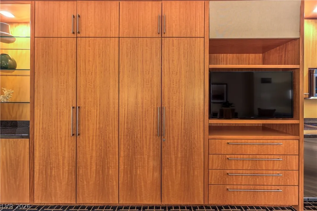 Elevate your lifestyle with luxurious Las Vegas living in this sophisticated 533-square-foot studio condominium, perched on the 16th floor of the iconic Trump International Hotel & Tower. Enjoy breathtaking panoramic views that capture the vibrant energy of Downtown Las Vegas alongside the majestic surrounding mountain ranges—creating a serene yet exciting backdrop right from your floor-to-ceiling windows. This impeccably designed residence boasts elegant crown moldings, rich custom cabinetry, and a plush king-sized bed for ultimate comfort. The sleek kitchenette is perfect for effortless entertaining or everyday convenience, while the opulent marble bathroom indulges with a double-sink vanity and an expansive six-foot soaking tub—ideal for unwinding after a night on the town. Seize the opportunity to own your own slice of elevated elegance in Las Vegas.