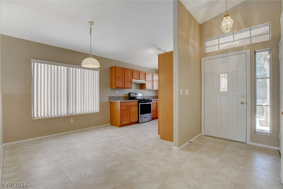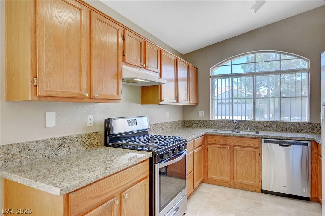This beautifully maintained single-story home in Summerlin offers modern upgrades and a bright, open layout. The kitchen is a standout, featuring sleek granite countertops, a stainless steel stove and dishwasher, and a charming garden window that brings in plenty of natural light.