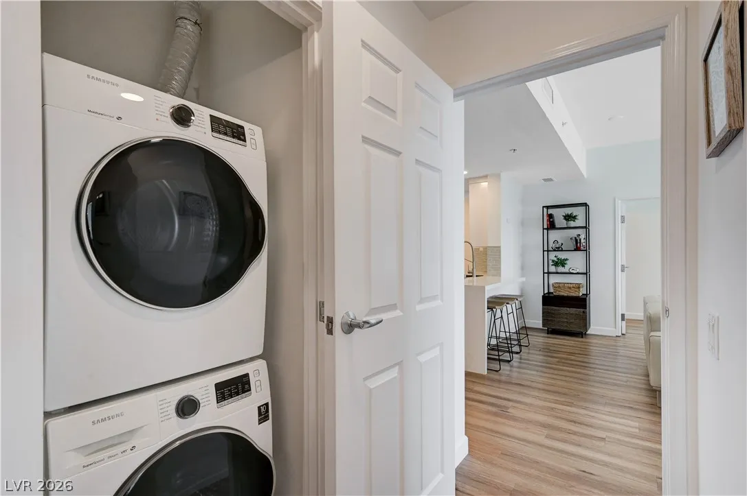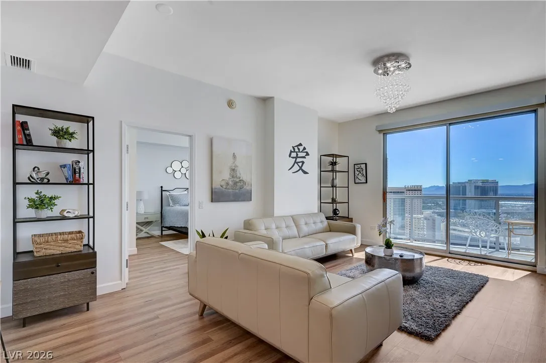 This stunning 2 bed, 2 bath + den at Allure delivers iconic Strip views from all three main spaces — living room and both bedrooms. East-side positioning means jaw-dropping views without the brutal afternoon sun beating through your windows. All the show, none of the heat.