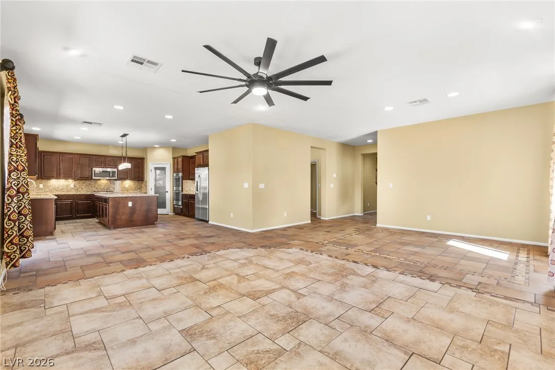 Former model home offering 6 bedrooms, including two downstairs and four upstairs. Each level features spacious primary suite, upstairs suite complemented by private loft-style living area perfect for relaxing or entertaining. Expanded paver driveway provides additional parking, home showcases newly installed front landscaping enhancing curb appeal. Fully landscaped backyard retreat, featuring variety of citrus and fruit trees, berries, vegetables, and custom waterfall creating peaceful outdoor setting. Enjoy year-round relaxation in 5-ft-deep swim spa/hot tub installed below ground and enhanced with resort-style sunshades for comfortable outdoor living. Every room equipped with hard-wired network connections and interior and exterior security system. Exceptional William Lyon Homes property meticulously maintained with quality materials throughout, fresh interior paint, on desirable corner lot in quiet cul-de-sac. Brand new dishwasher, washer, dryer included. Solar panels removed.