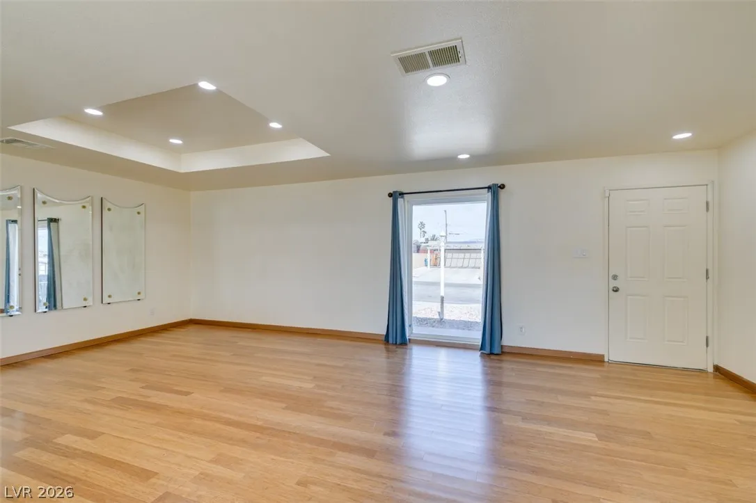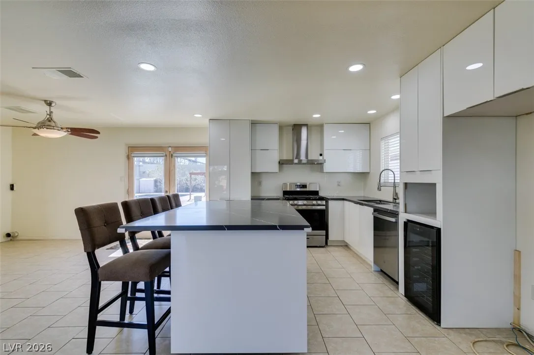Welcome to your Las Vegas oasis! Offering space, flexibility, and no HOA. This 4-bedroom home features a custom kitchen with quartz countertops and stainless steel appliances, opening to spacious living areas finished with bamboo flooring.