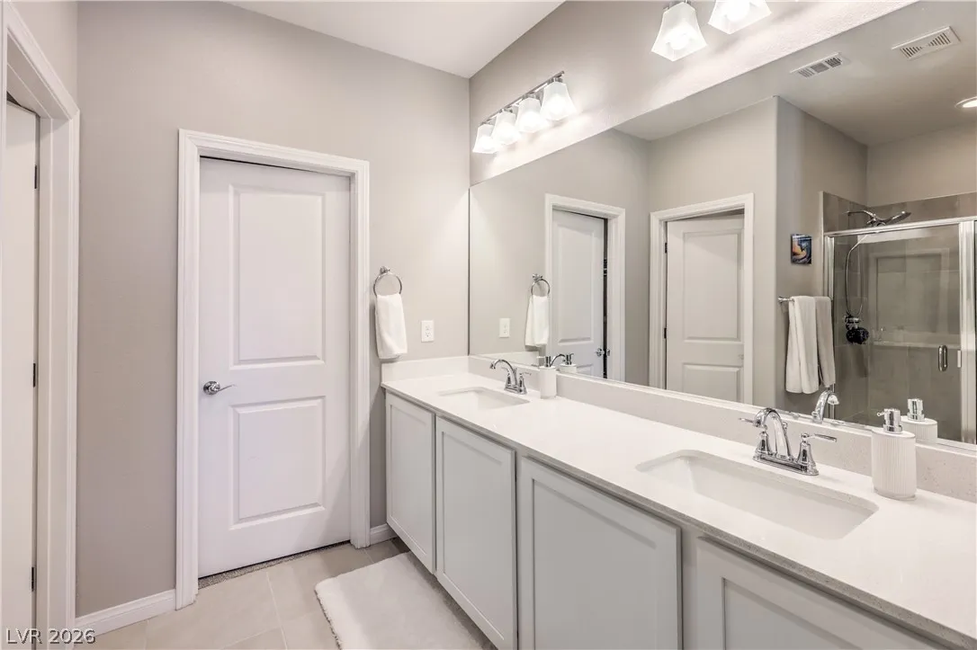 Modern 3-level single-family home in Summerlin West’s Redpoint Village (Vireo) with sweeping mountain views, partial Strip/valley views, and stunning sunsets. Thoughtfully designed 1,810 sq ft floor plan that uses every inch efficiently. Entry level offers a flexible media space that could be converted to a third bedroom. Upstairs, a grand great room features high ceilings, abundant windows, and an open layout. The upgraded kitchen includes quartz countertops, GE Profile appliances, stainless steel sink, sleek cabinetry, and a large island. 2nd & 3rd level are dual primary bedrooms complete with large bathrooms, walk-in closets and decks with amazing mountain views, Finished backyard with landscaping, turf, and a covered patio. Energy-efficient construction, smart-home features, and a two-car garage. Located near parks, trails, Red Rock Canyon, Downtown Summerlin, and the 215.