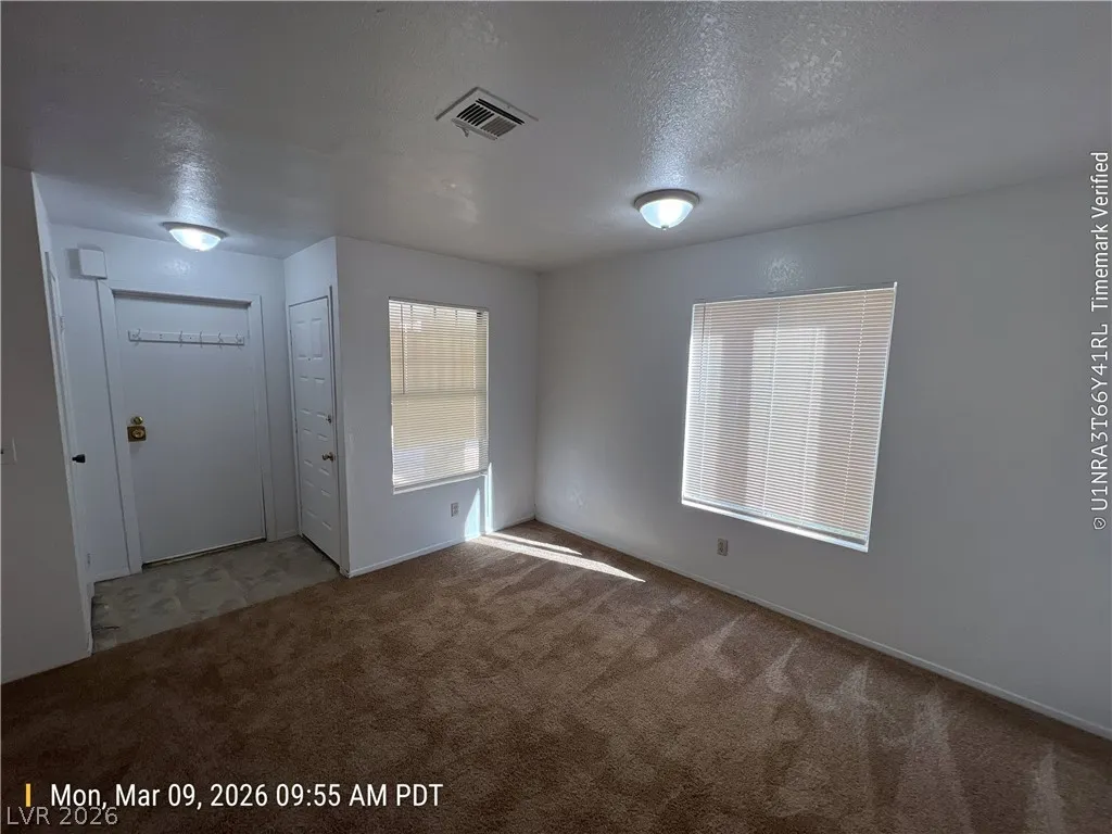 NE Las Vegas, two story home. Large living room has two way fireplace shared with family room. Kitchen has pantry cabinets, laminate counters & ample cabinet space. Kitchen & formal dining. Laundry room has hookups for washer & gas dryer. 1/2 bath d/s. Walk in closet, double sink vanity & separate tub/shower in master.